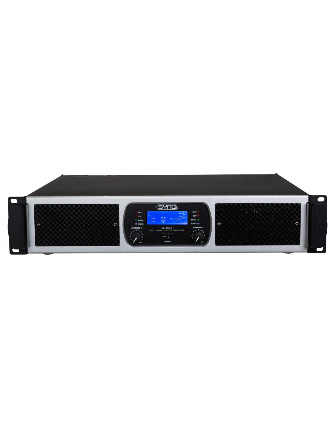 • L'écran LCD indique : le niveau d'entrée audio, la tension secteur, la température de fonctionnement et la vitesse des ventilateurs.