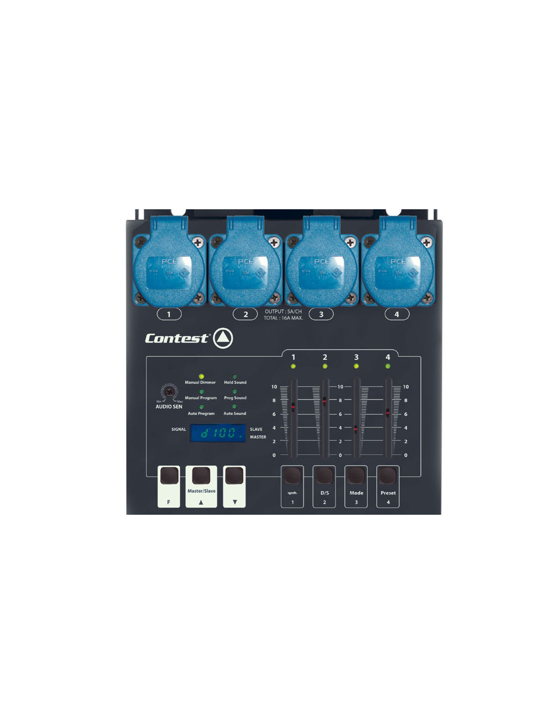 Bloc 4 voies DMX et analogique compact 4 x 5A avec faders.