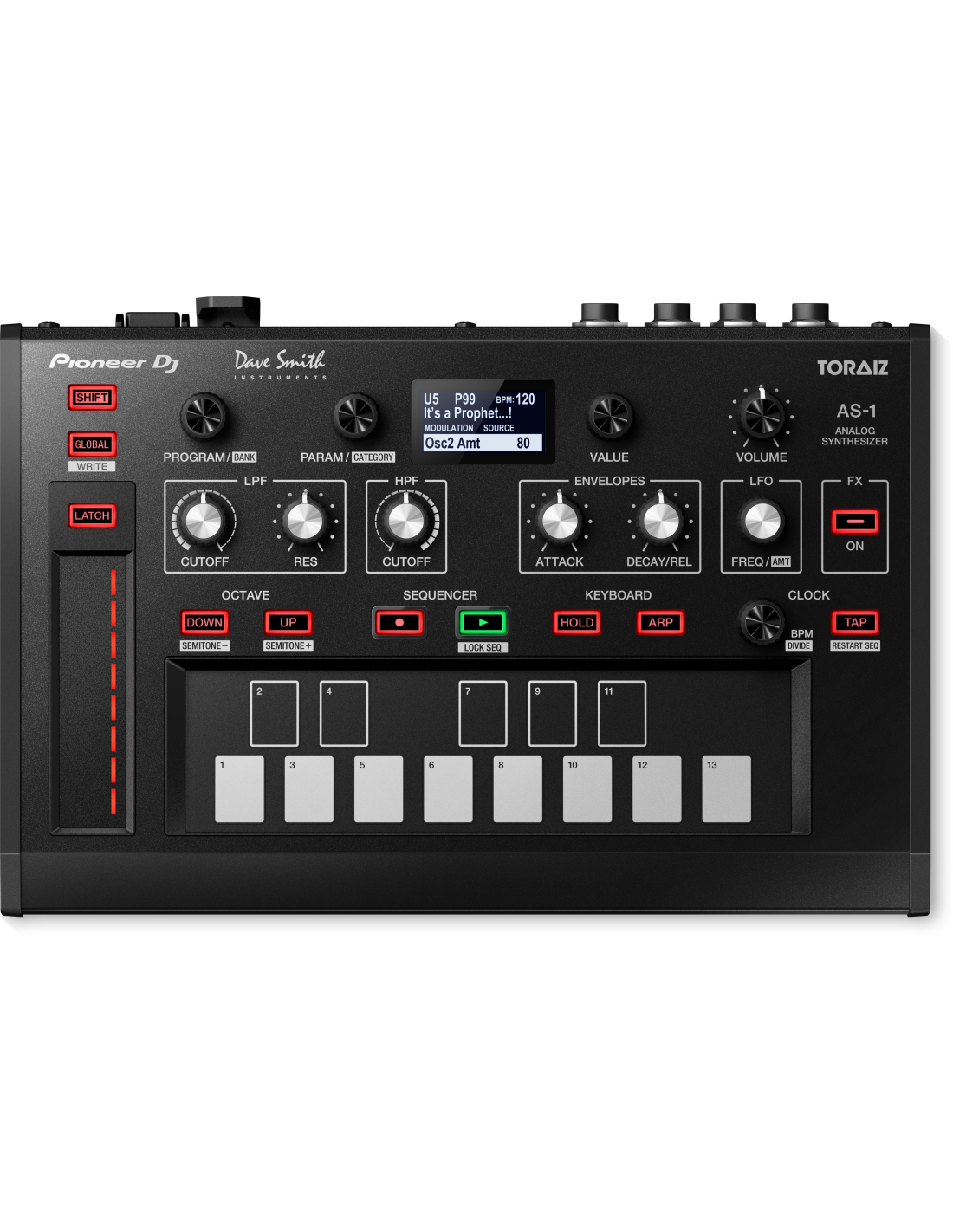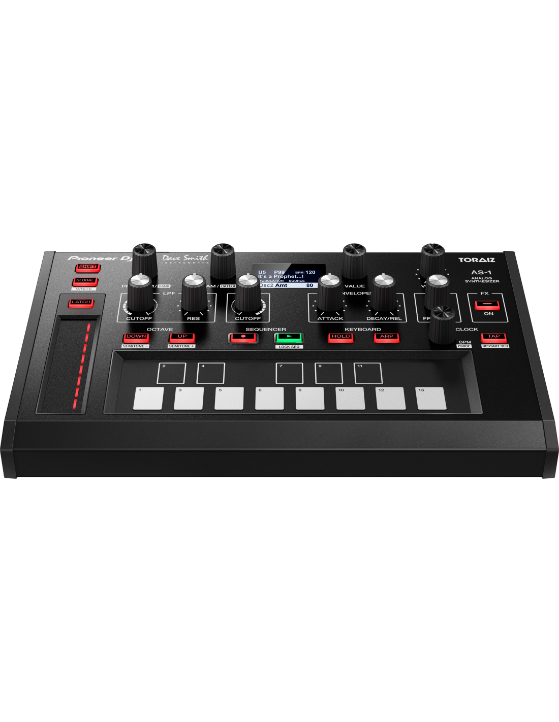 Le TORAIZ AS-1 utilise un véritable moteur synthétique entièrement programmable basé sur le circuit analogique indépendant du synthétiseur Prophet-6 de Dave Smith Instruments. Il hérite également de 7 effets intégrés du Prophet-6 et présente une toute nouvelle distorsion numérique.