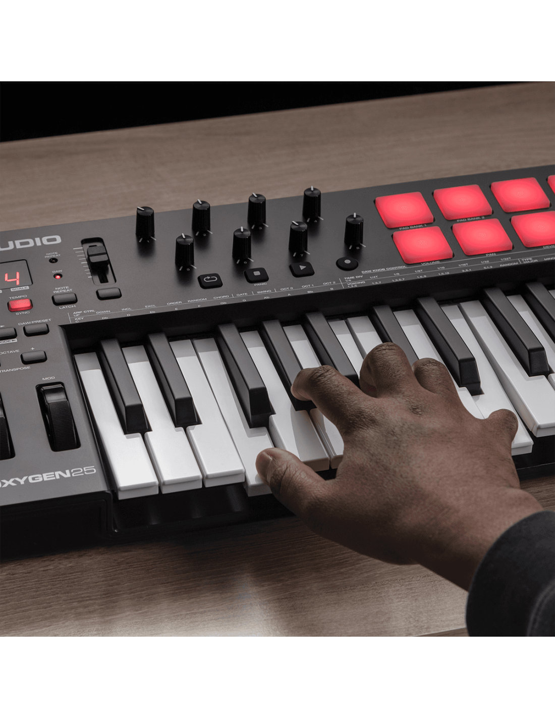 L'Oxygen 25 Mark V est un clavier-maître au format très compact alimenté par USB, équipé de 25 touches et livré avec une offre logicielle complète pour libérer tout votre potentiel créatif. Cette cinquième génération d'Oxygen a été spécifiquement pensée pour les utilisateurs souhaitant un clavier-maître complet, efficace et de qualité, leur permettant de se focaliser sur l'essentiel : la production et la création de musique.