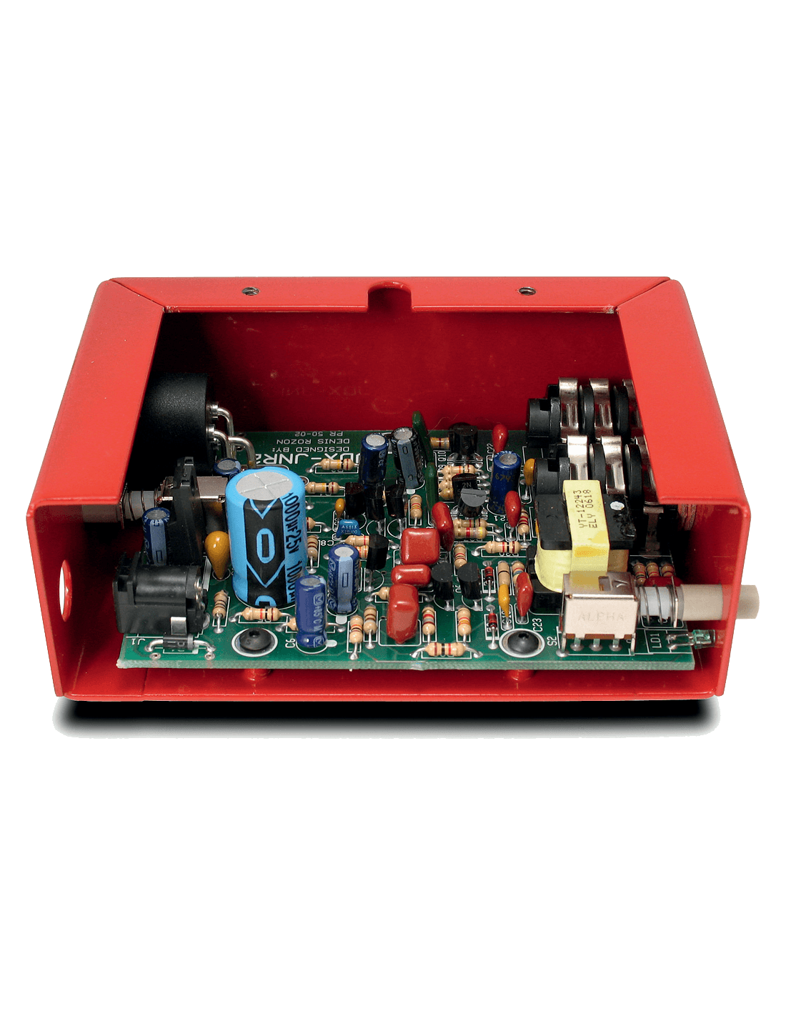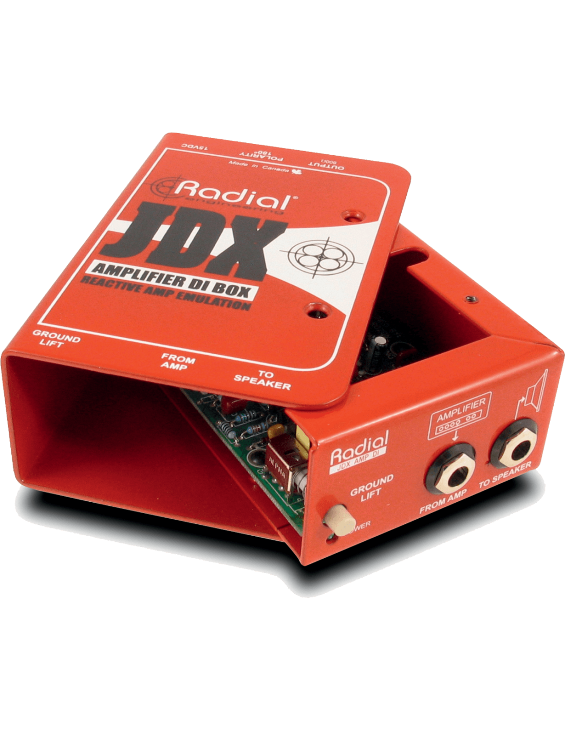 A l'inverse des autres systèmes similaires qui capturent le son de la tête uniquement, la radial JDX est unique dans le sens où elle réagit à la tête ET au HP pour créer un son plus dynamique et réaliste. La JDX utilise un transformateur pour isoler l'amplificateur du système de sonorisation / enregistrement afin d'éviter les bruits parasites causés par les boucles de masse. Un filtre actif reproduit la courbe de réponse d'un HP typique de 12". La JDX utilise un circuit classe A 100% discret pour le meilleur résultat sonore possible.