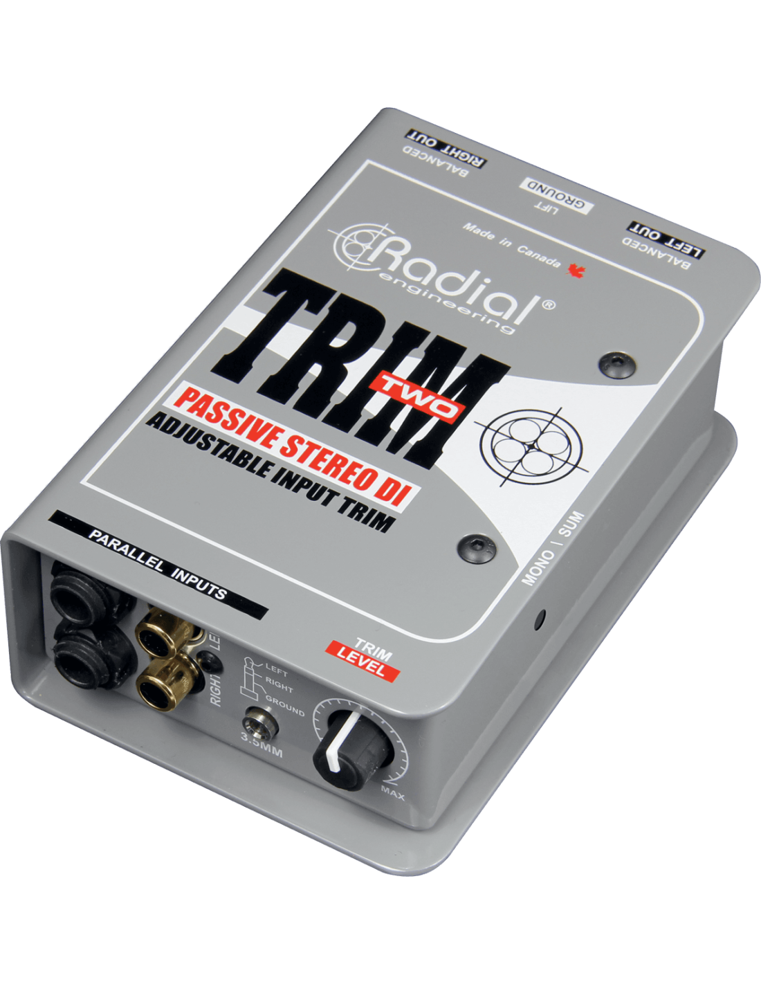 La Radial Trim-Two est une boîte de direct passive conçue pour être utilisée avec les ordinateurs portables, smartphones, tablettes et autres appareils où l'utilisateur a besoin d'un contrôle de volume facilement disponible pour des ajustements rapides sur scène.