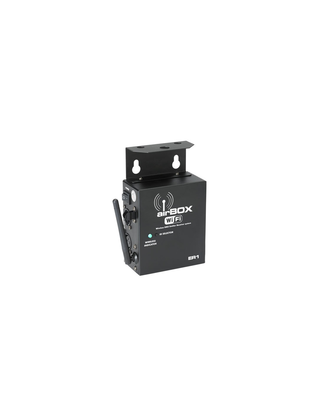 Grâce à son équerre amovible, le boîtier airBOX-ER1 s'installe très facilement en fixation murale ou sur structure. Sa sortie alimentation vous permet en plus de relier votre boîtier à vos projecteurs en DMX comme en 220V.