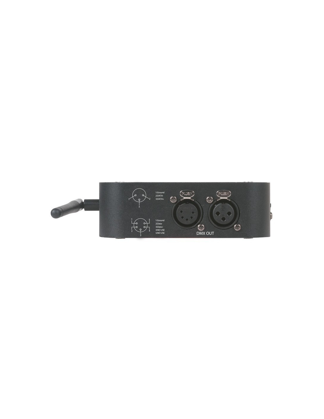 - Émetteur/récepteur DMX sans fil sur batterie (peut être utilisé soit comme récepteur, soit comme émetteur de signal DMX, plusieurs récepteurs peuvent recevoir le même signal – plusieurs émetteurs et récepteurs peuvent gérer jusqu’à 15 univers DMX en même temps).