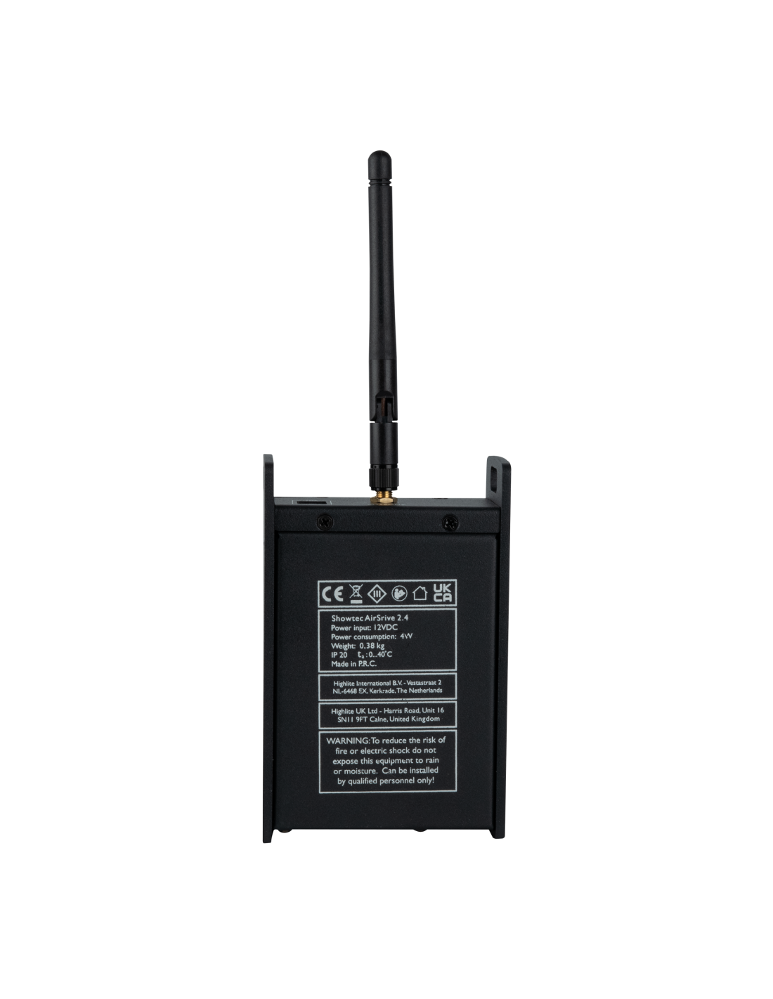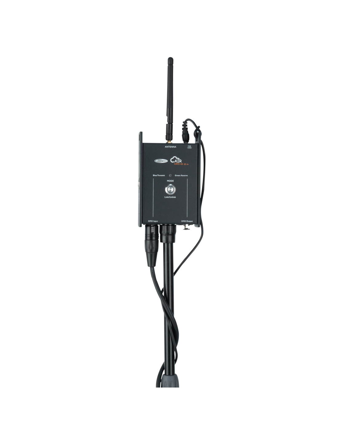 AirDrive 2.4 Pocket est doté d’un filetage M10 permettant d’y fixer une pince, et d’un filetage 3/8” pour l’installer sur un pied de micro en toute simplicité. Cela permet de surélever rapidement et facilement l’appareil au-dessus du public lorsque cela s’avère nécessaire (si vous êtes dans la salle, par exemple). Une utilisation en ligne de vue directe est recommandée, afin de garantir une réception optimale et une portée maximale. AirDrive 2.4 Pocket est compatible avec AirDrive 2.4 IP. Il est livré avec un adaptateur d’alimentation universel, et disponible avec des connecteurs DMX XLR à 3 ou 5 broches.