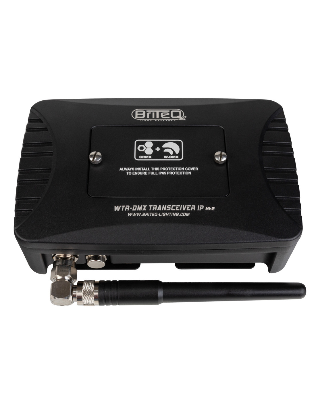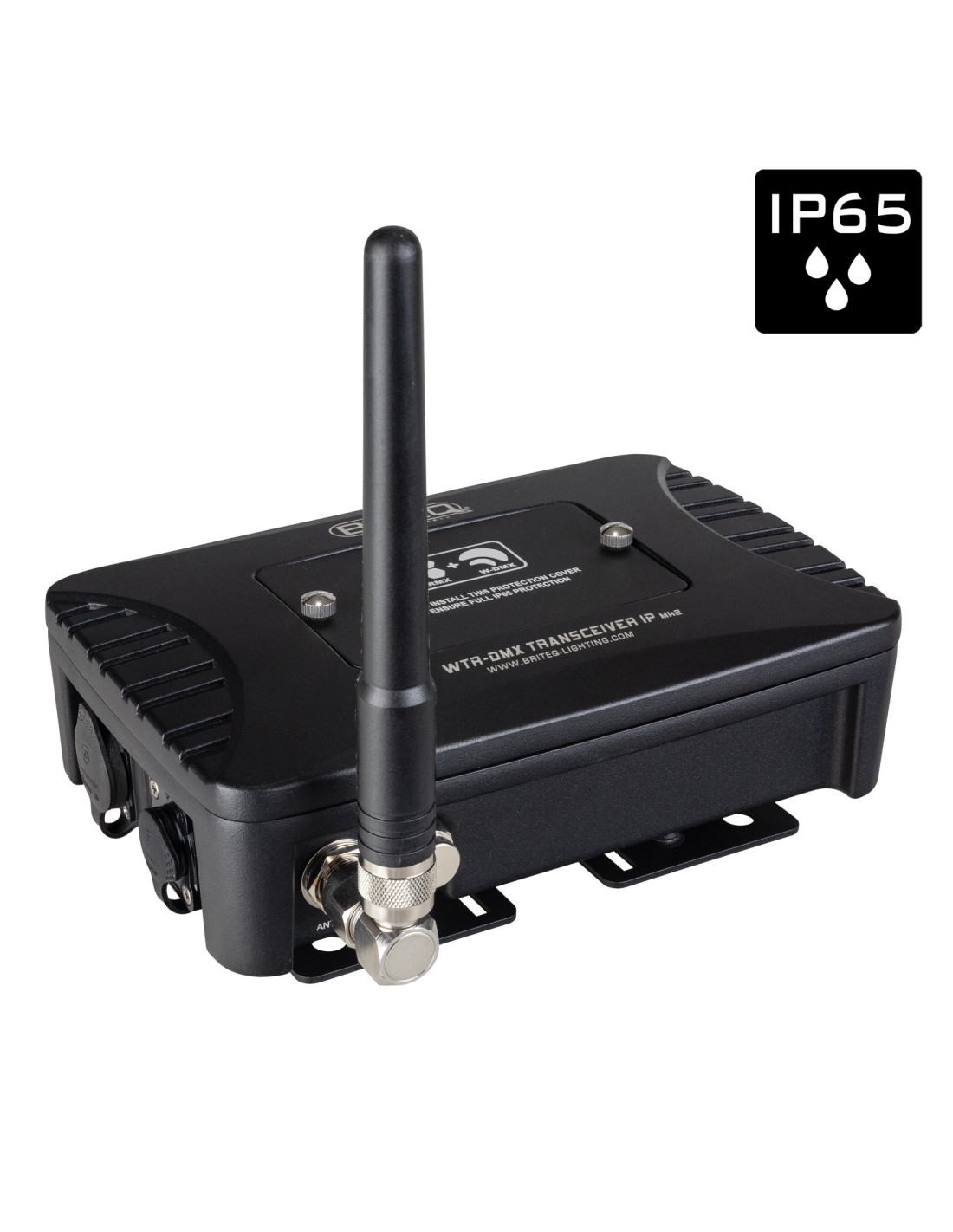 Émetteur-récepteur DMX sans fil IP65 pour l’extérieur, compatible avec LumenRadio® et Wireless Solution®. Boîtier robuste pour les installations fixes et les applications scéniques.