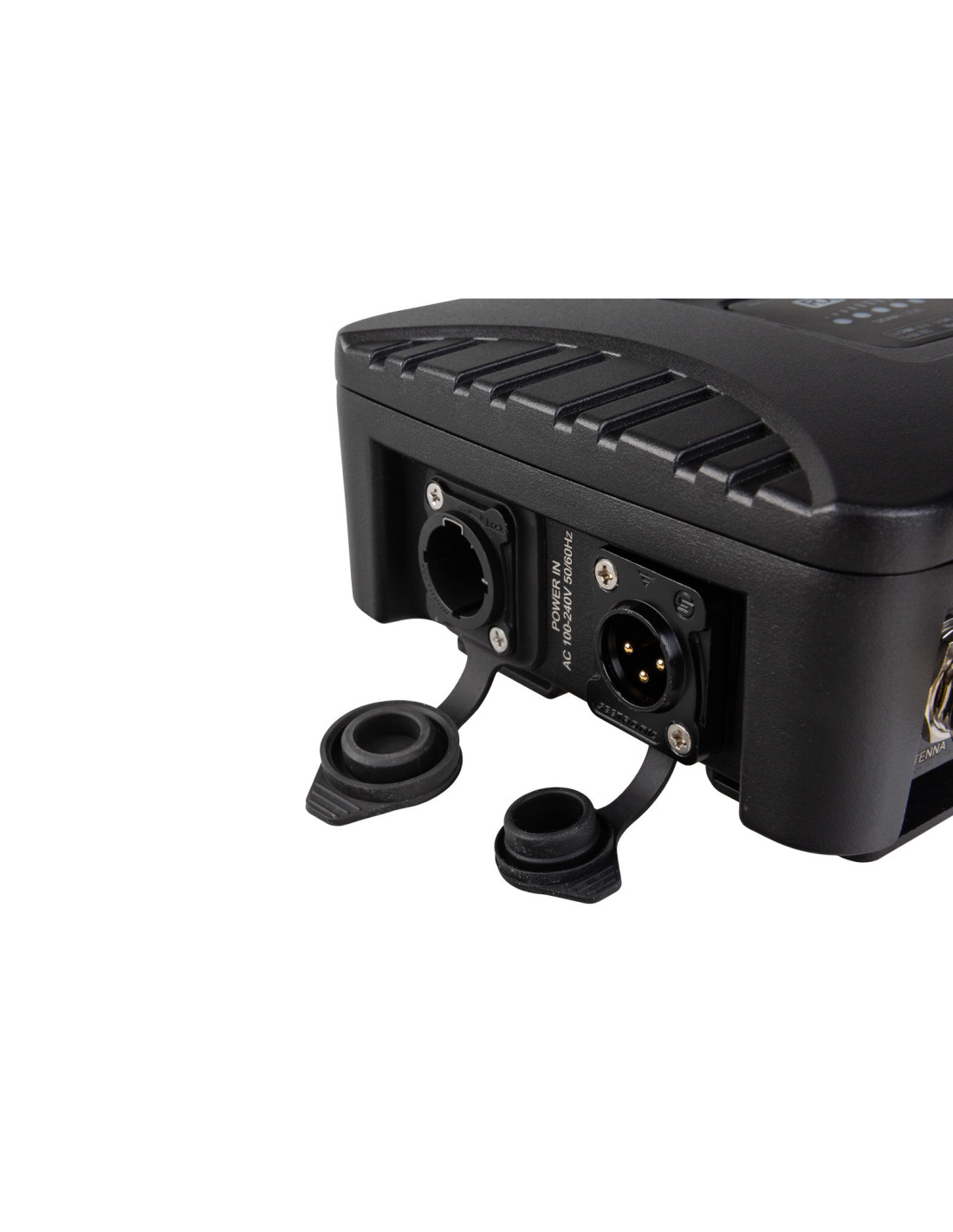 > Connecteurs d’entrée/sortie d’alimentation IP65 verrouillables (compatibles Neutrik PowerCON® TRUE1).