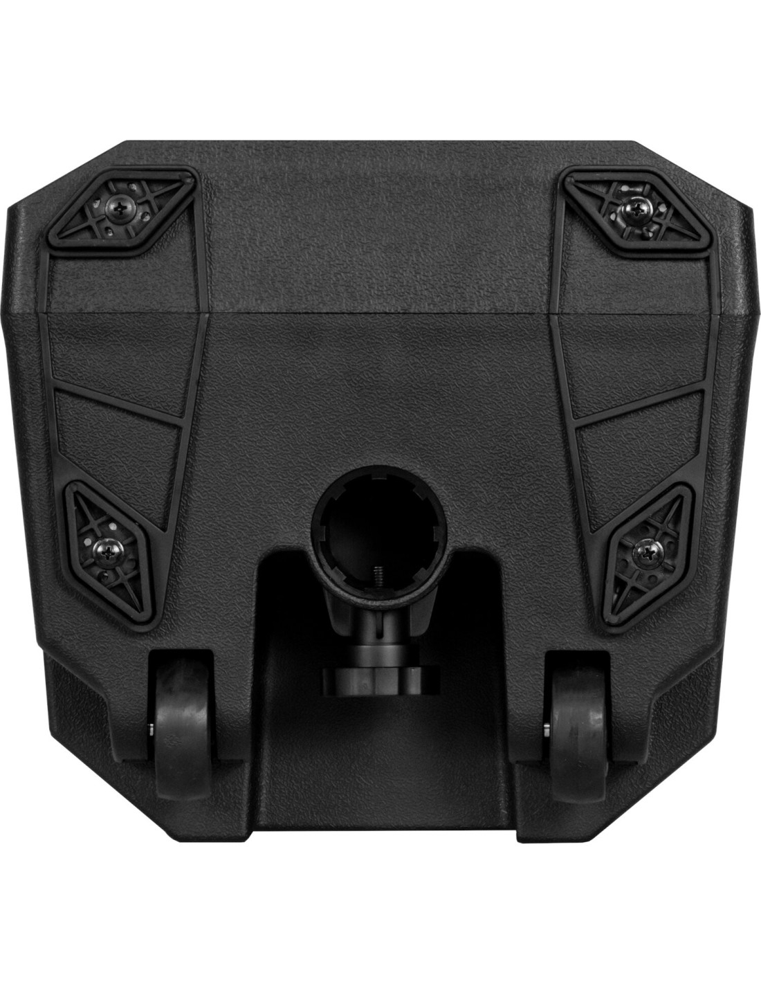 Enceinte bass reflex à 2 voies munie d’une grille métallique, pour une utilisation mobile ou des installations fixes.