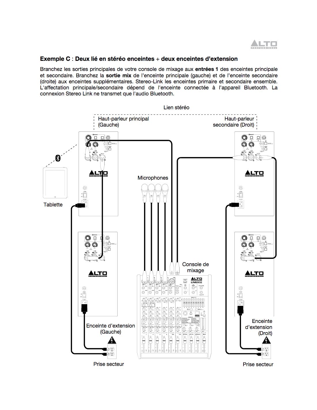 > Module Bluetooth intégrée : liaison Bluetooth entre enceintes (Stereo Link), ou appairage avec un appareil Buetooth pour la diffusion de musique