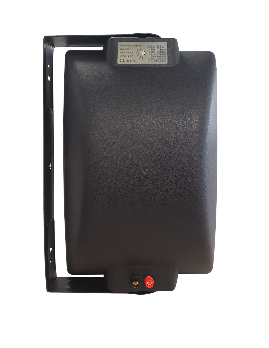 Enceinte 80 watts RMS d'excellente qualité fonctionnant en ligne 100 volts ou en 8 Ohms. Esthétique résolument moderne, forme trapézoïdale pour faciliter le montage dans les encoignures. Livrée avec étrier de fixation.