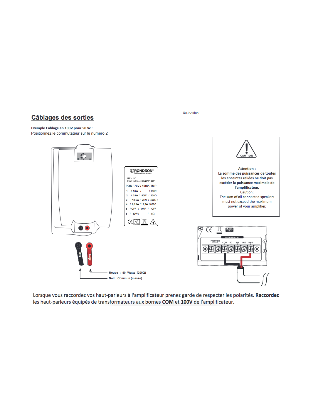 Puissance 50 - 30 - 20 - 10 watts en ligne 100 volts