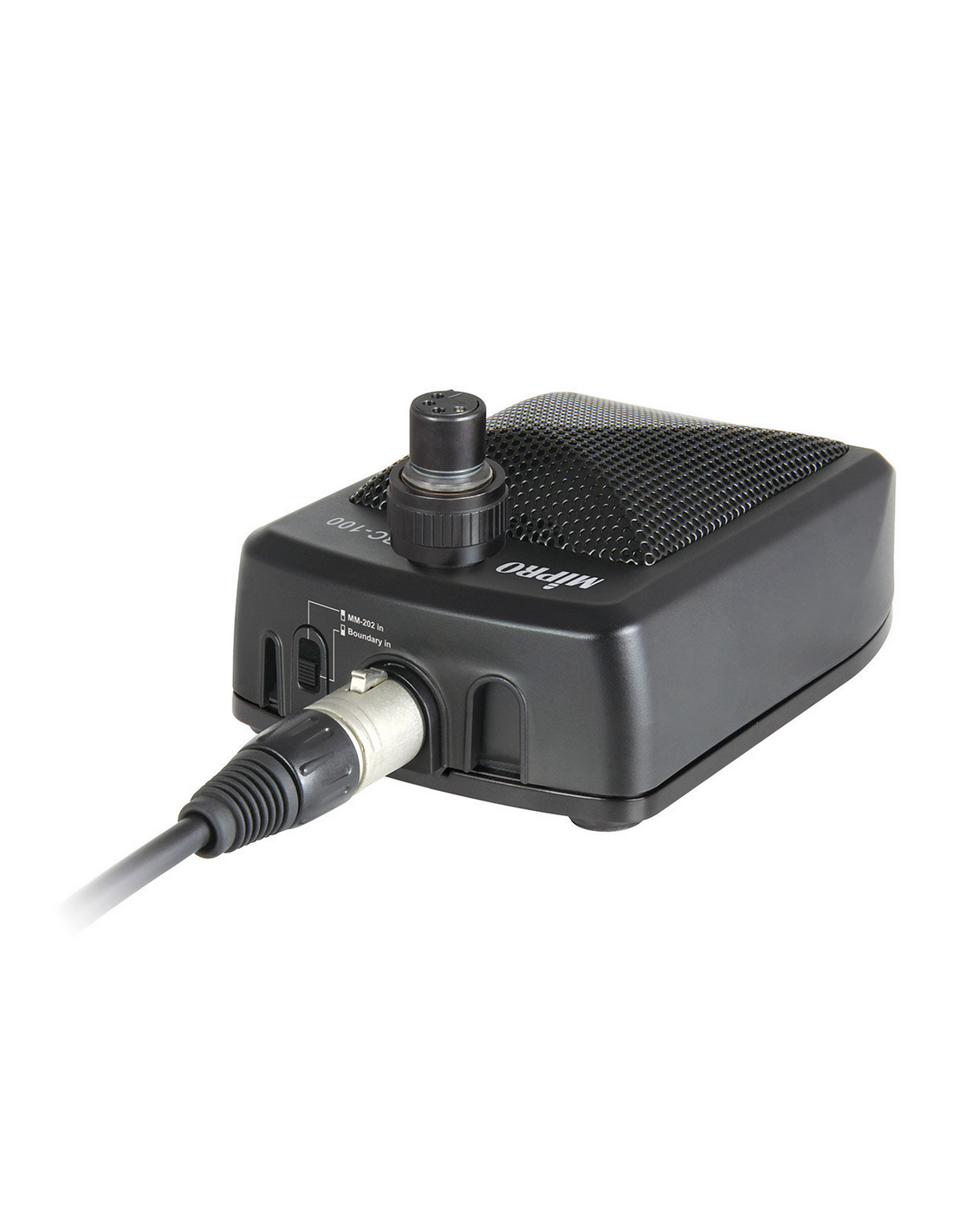 Le BC-100 peut être utilisé simplement posé sur une table comme microphone de surface ou connecté à un microphone col de cygne (vendu séparément) et devenir un microphone de conférence.