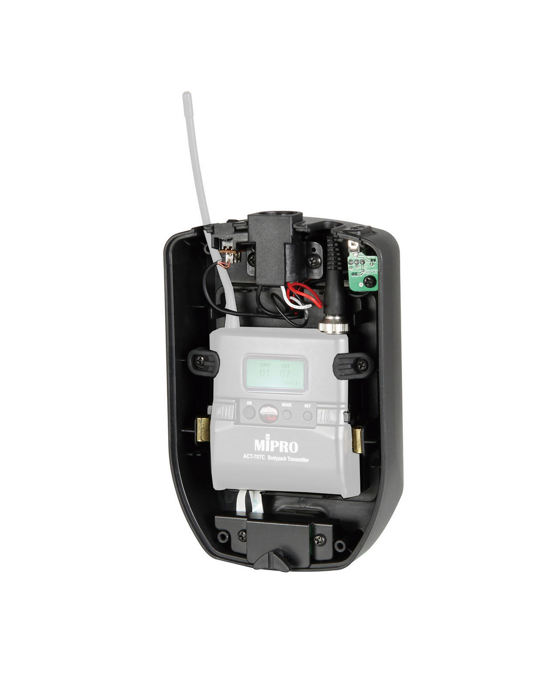 Il dispose d'un emplacement intérieur prévu pour recevoir un émetteur de poche AC 32T ou ACT 52T (vendu séparément) et ainsi transmettre sans fil vers un récepteur type ACT 311 ou 312
