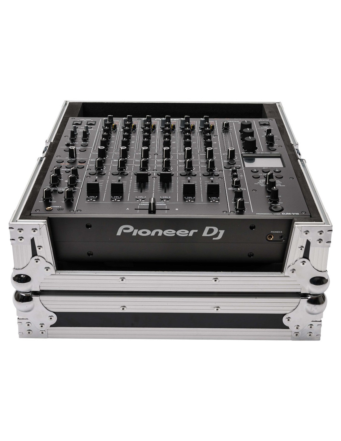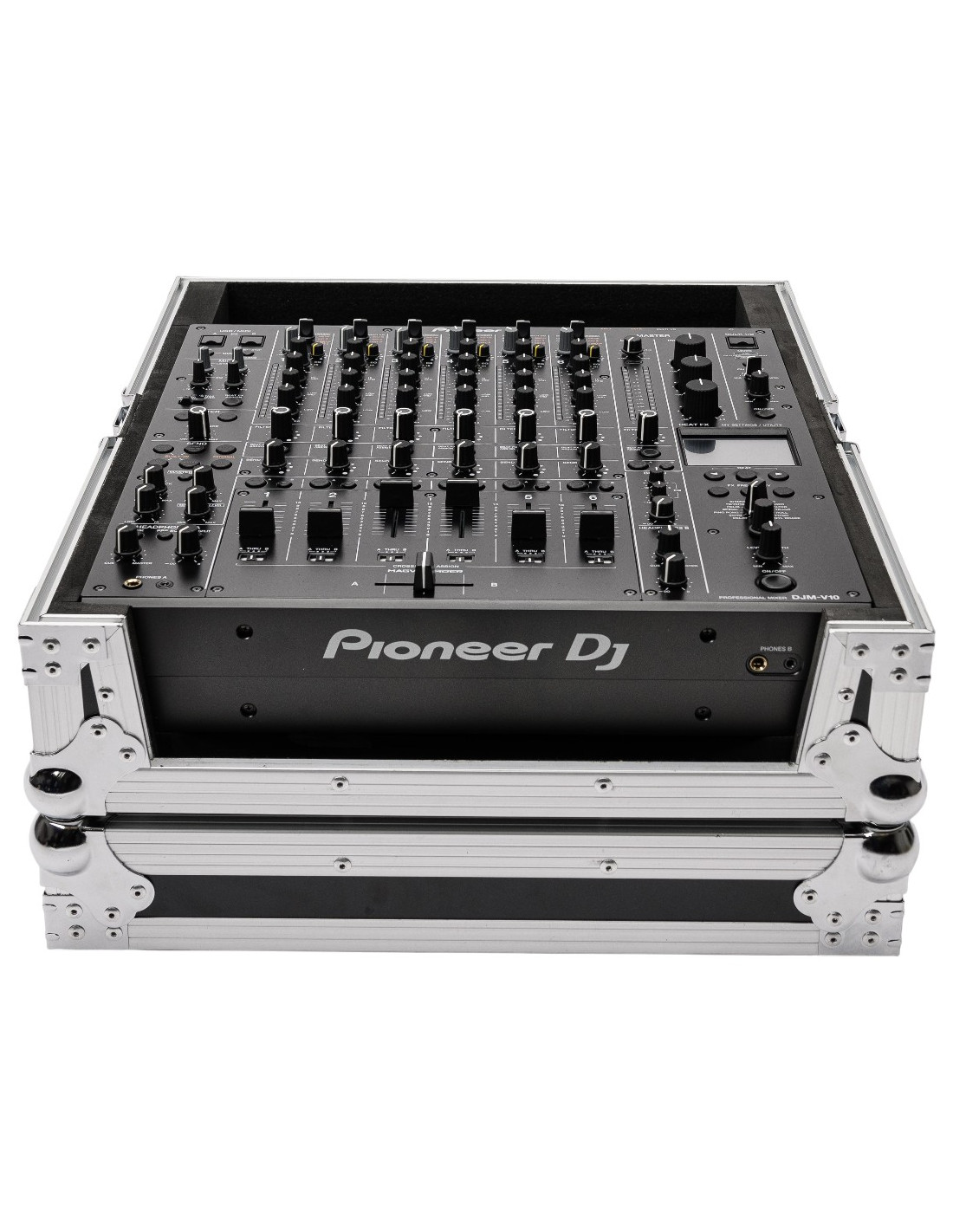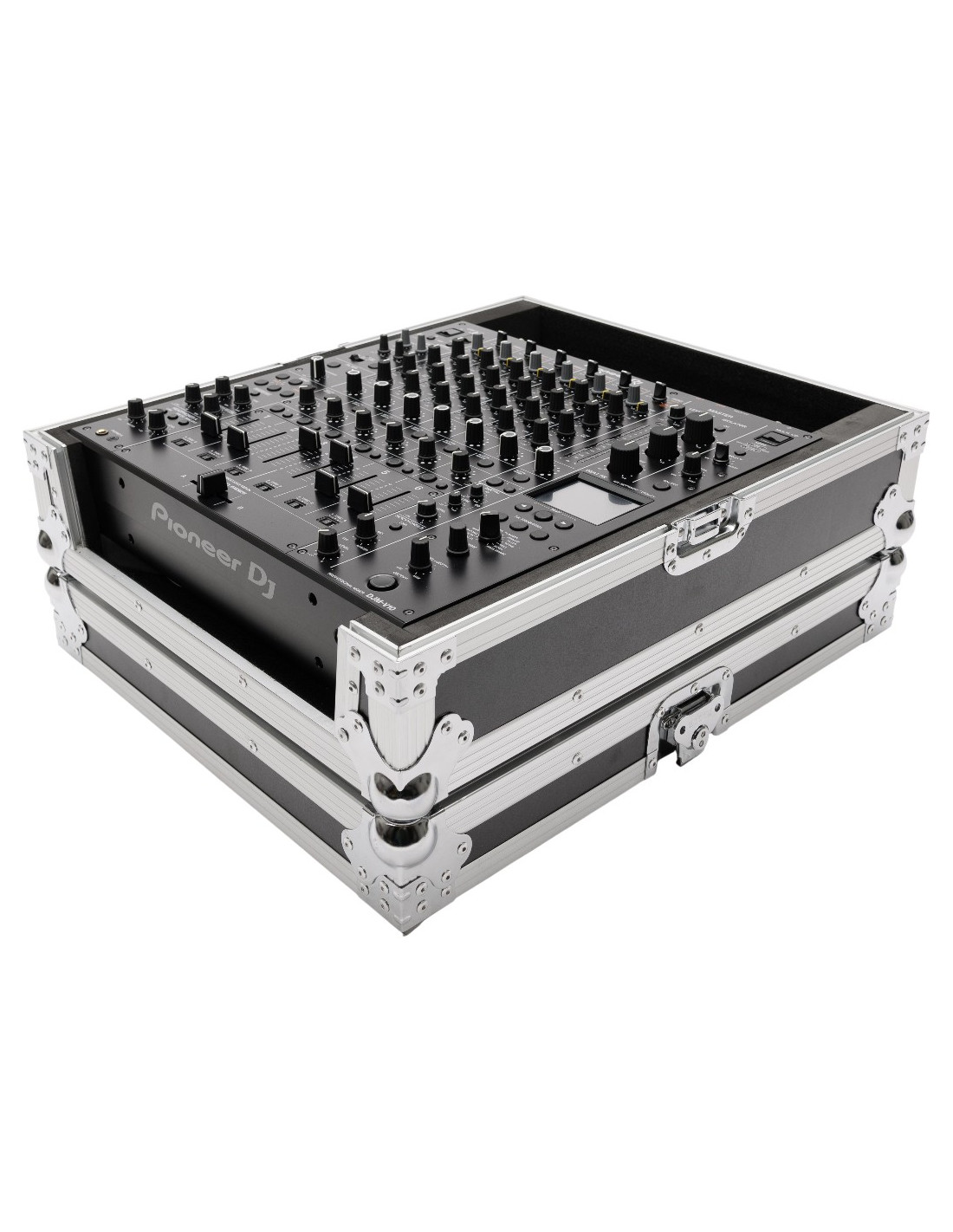 Flight-case noir conçu en contreplaqué de 9 mm d'épaisseur dédié au transport / protection du mixage Pioneer DJM-V10/DJM-A9.