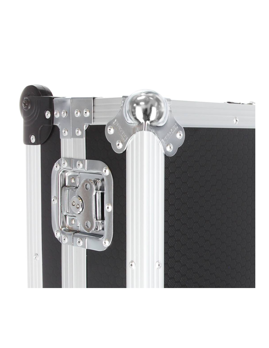 Flight case conçu pour le contrôleur OPUS QUAD, équipé de roulettes pour un transport facilité. Finition noir alvéolée.
