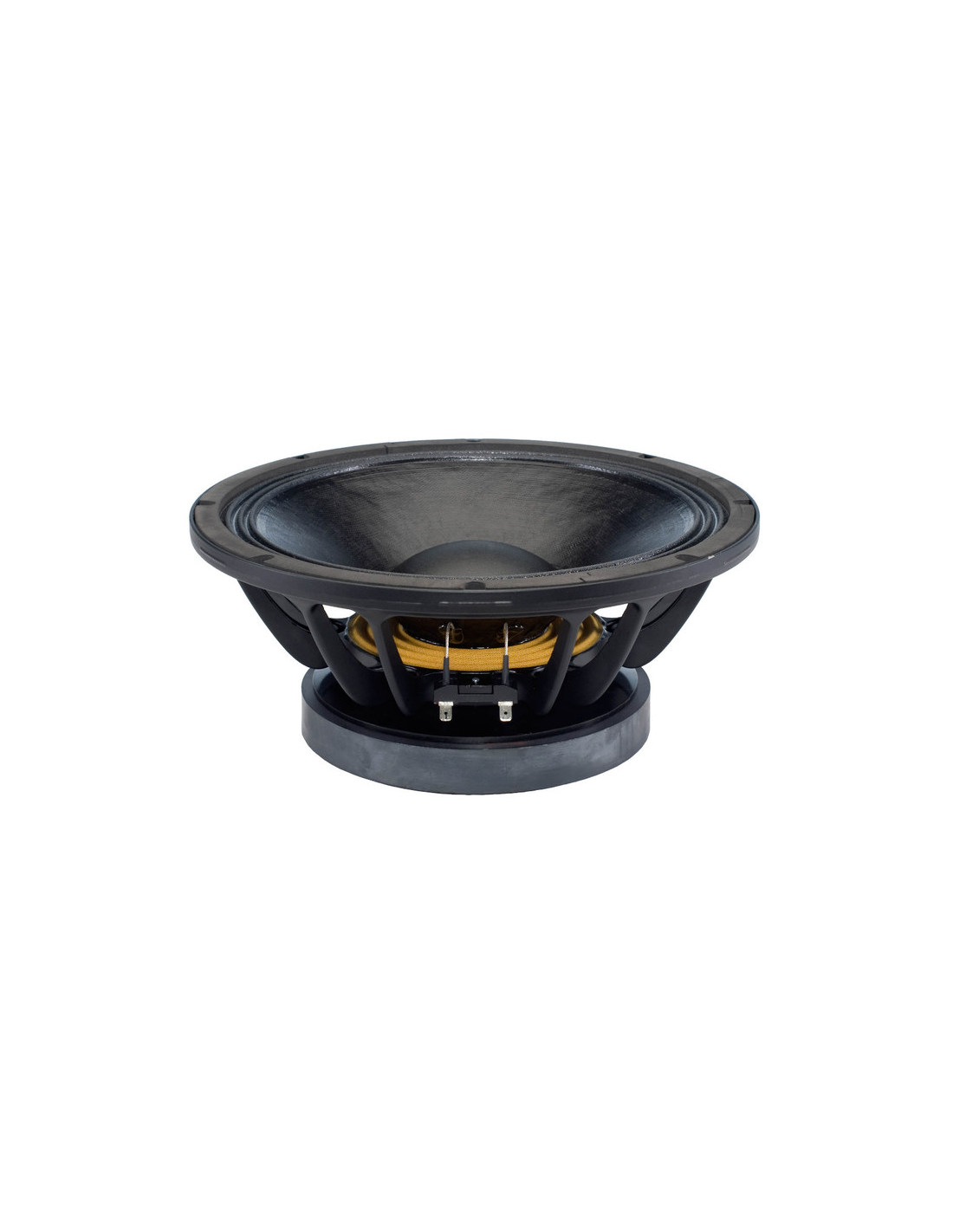 Domaine d'application du B&C Speakers 12FW76 : Utilisation en Basse/Medium, le B&C 12FW76 peut être utilisé dans un satellite de forte puissance avec un gros moteur 1.4 ou 2" mais, ses caractéristiques lui permettent d'offrir un bas Medium et Kick norme. Une bague de démodulation en Aluminium permet de canaliser le flux magnétique de l'aimant et diminuer énormément la distorsion