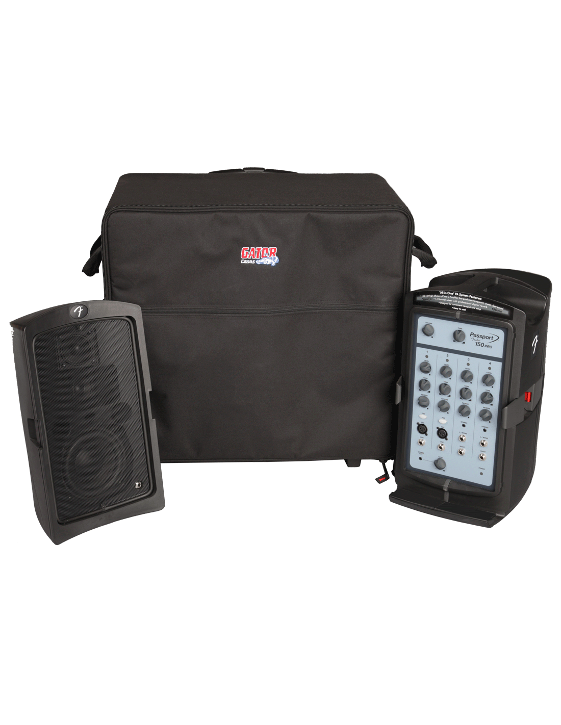 - Convient à la plupart des systèmes de sonorisation portables, y compris Fender Passport 300 et 500, Yamaha StagePas 250M, 500 et 600i, et Behringer EPA300.