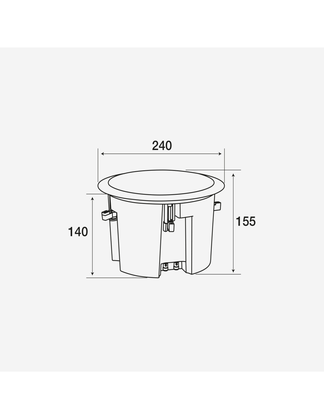 • Dimensions extérieures (diamètre et profondeur) : 240 x 140 mm