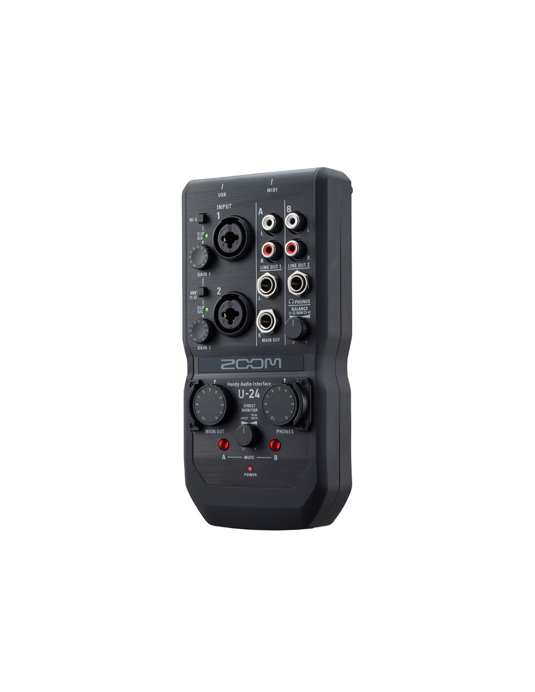 U-24 est équipée des connexions essentielles pour l'enregistrement simplifié. Deux entrées combo avec boutons de gain indépendants et des indicateurs de niveau multi-couleurs vous permettent de connecter des micros, claviers, consoles, et plus encore. L’alimentation fantôme 48V peut être fourni aux deux entrées, et l'entrée 1 prend en charge Hi-Z pour les guitares, basses, ou autres instruments passifs.