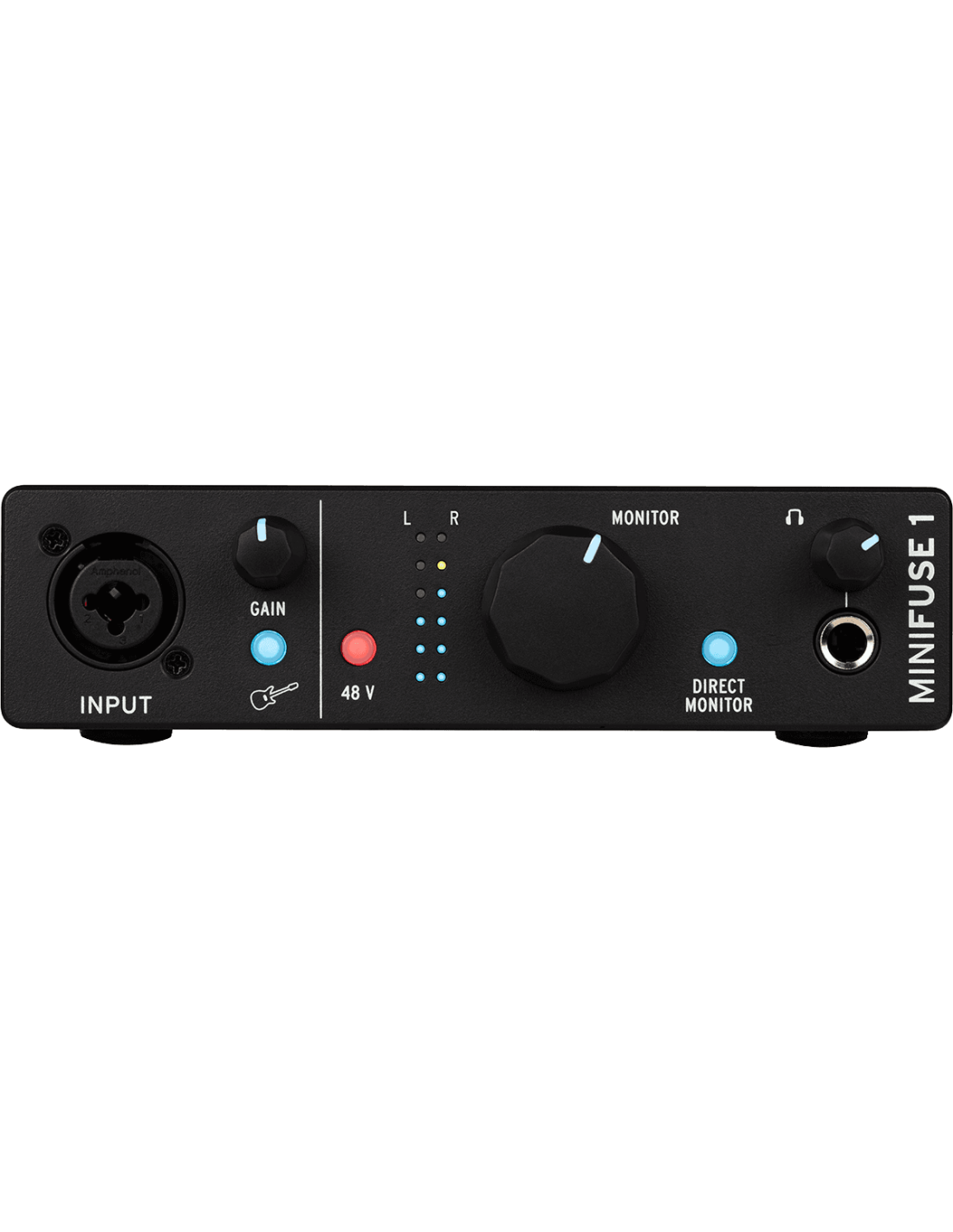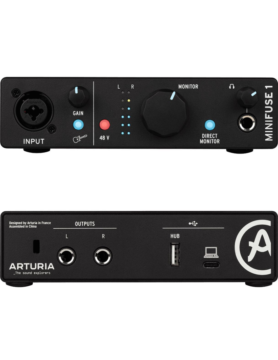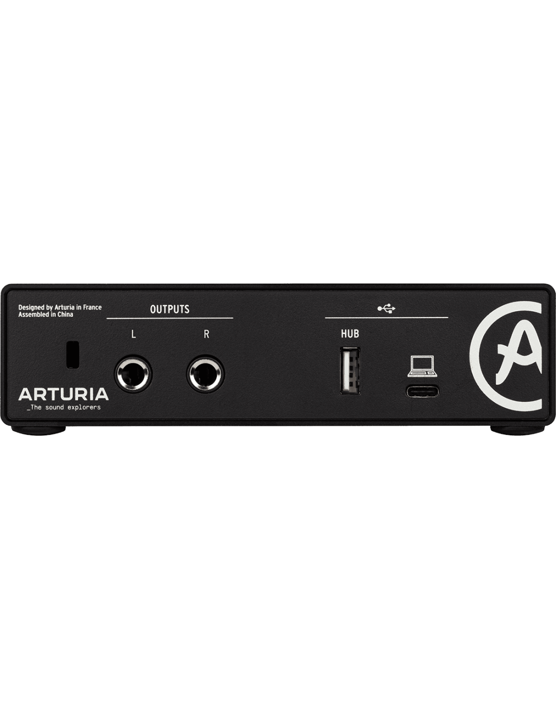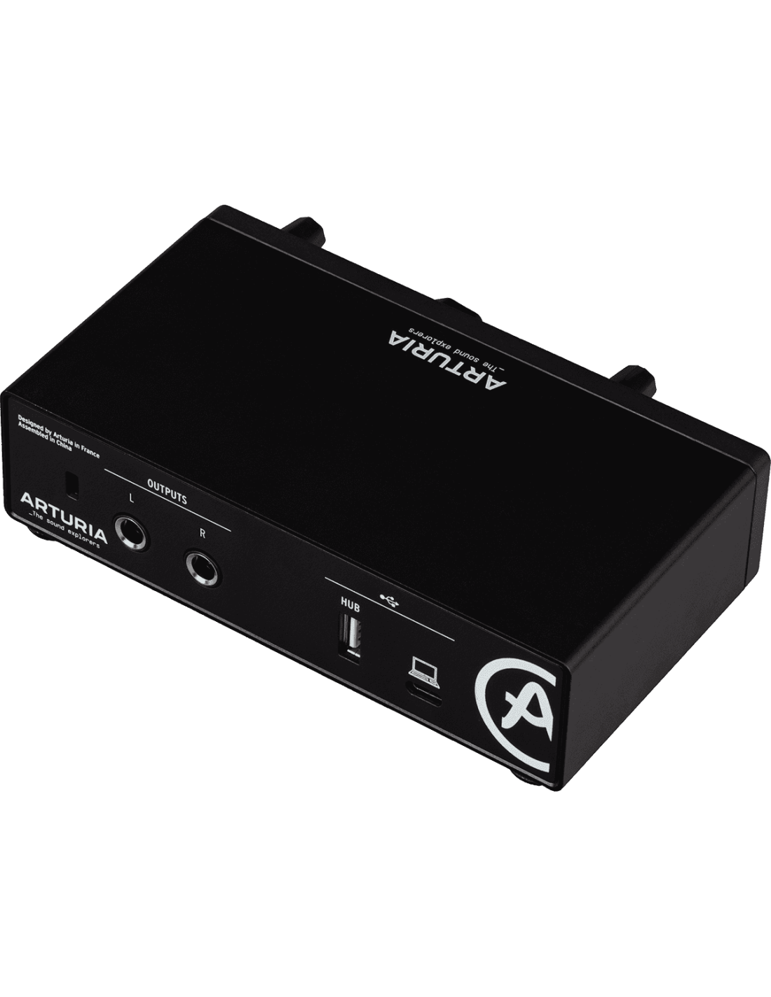 Interface audio USB-C 1 entrée / 2 sorties compacte, puissante et construite dans un châssis en métal rigide finition noire.