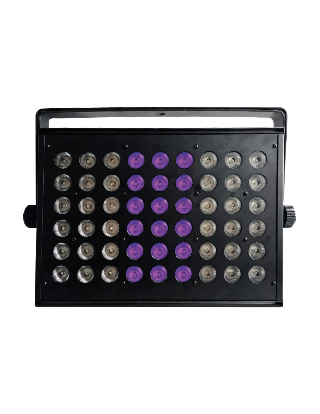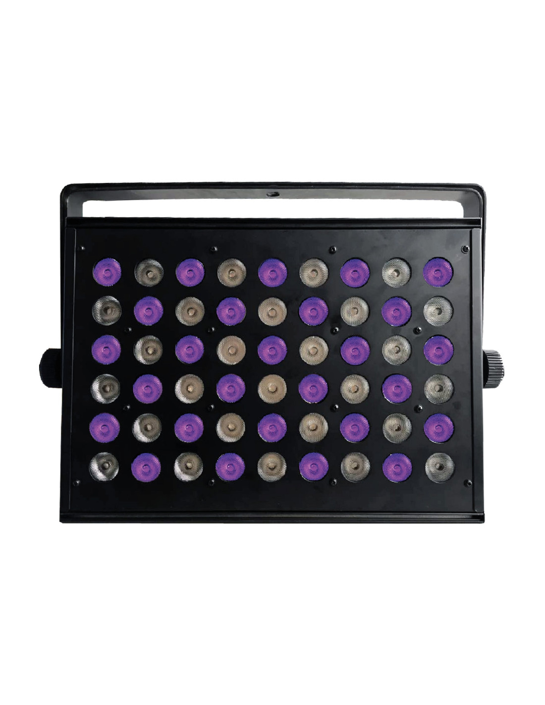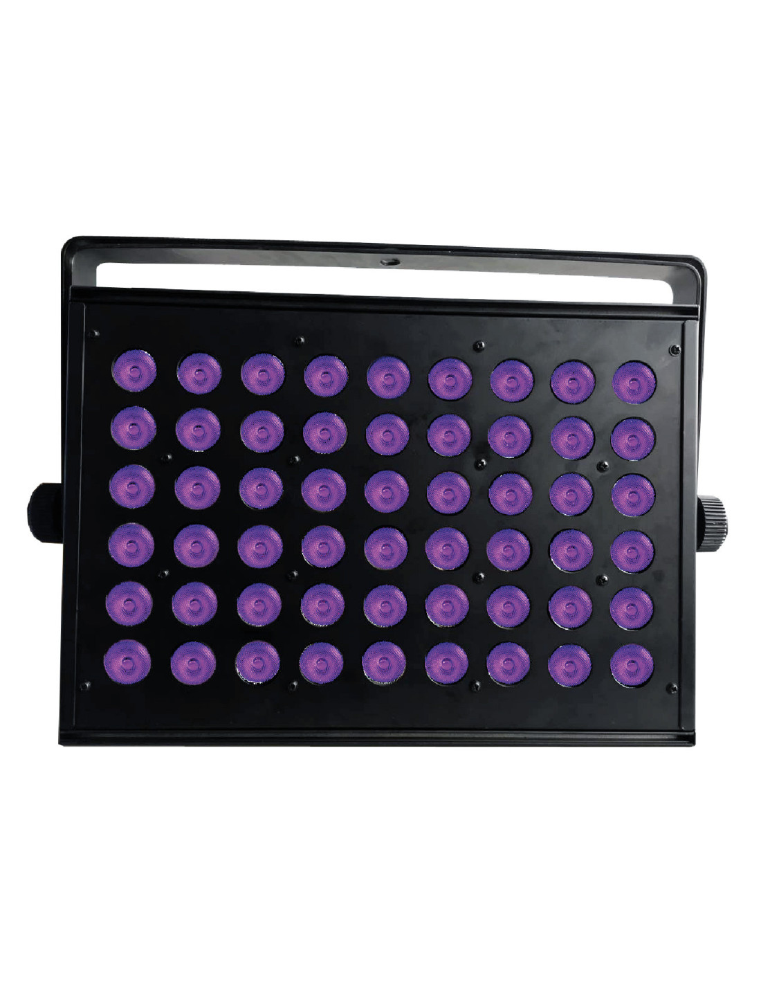 Composé de 54 LEDS l'UV PANEL 54 x 3 W est le plus grand et plus puissant panneau lumière noire à LED existant sur le marché. Il bénéficie des dernières technologies révolutionnaire de led 3 W ultra efficace et vous permet d'augmenter vos options de conception grâce à ses 4 modes de fonctionnements : DMX 512, son actif, automatique et maitre / esclave.