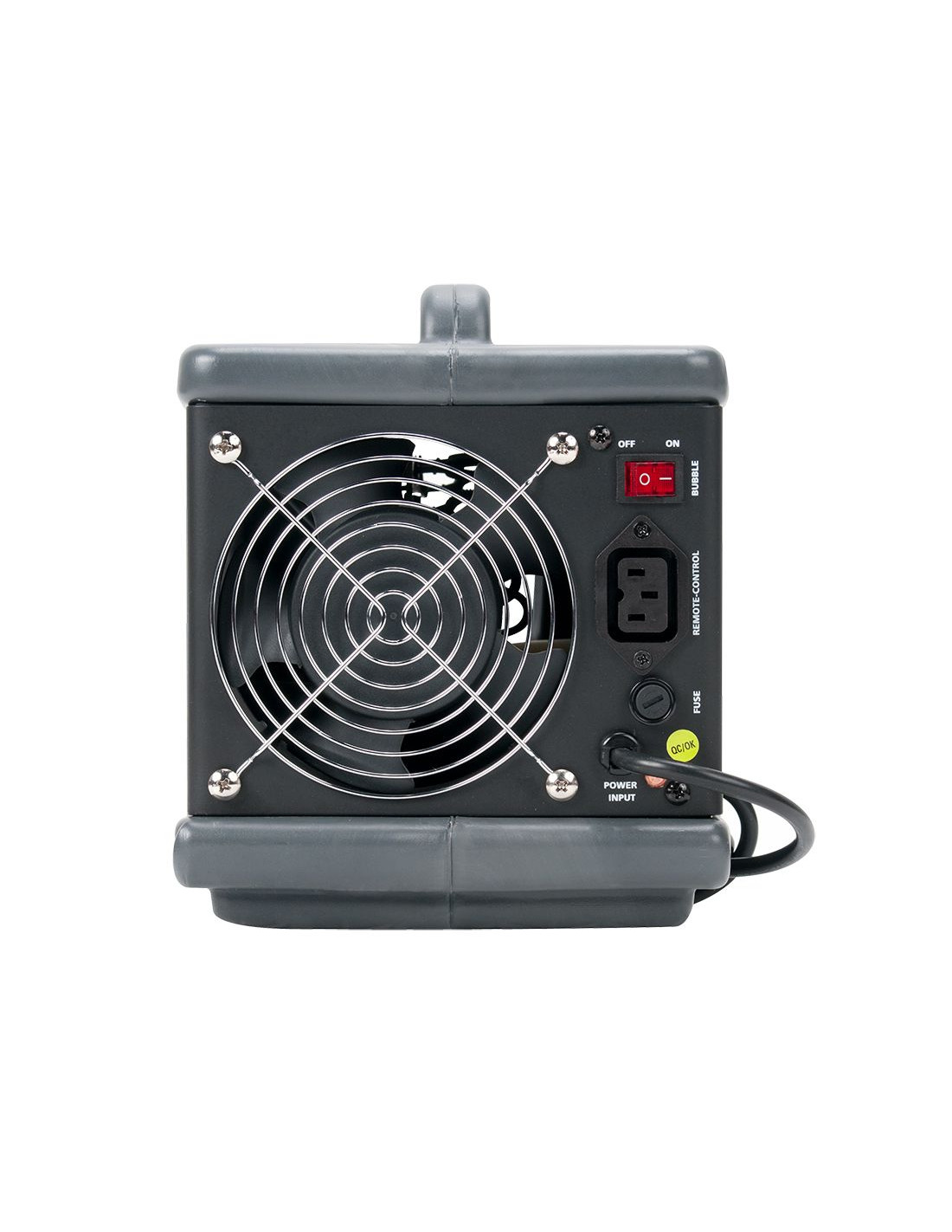 Doté d'un interrupteur marche/arrêt intuitif à l'arrière et d'une télécommande filaire pratique avec un câble de 7,6 m (25 pi), il est incroyablement convivial. Le boîtier en plastique durable, le grand ventilateur à grande vitesse et la poignée de transport en font un compagnon robuste. Il s'adapte à la plupart des liquides à bulles, consomme une énergie minimale (24 W) et a un taux de consommation de liquide de 1 litre toutes les deux heures (120 V : 20 ml/min, 230 V : 11 ml/min).