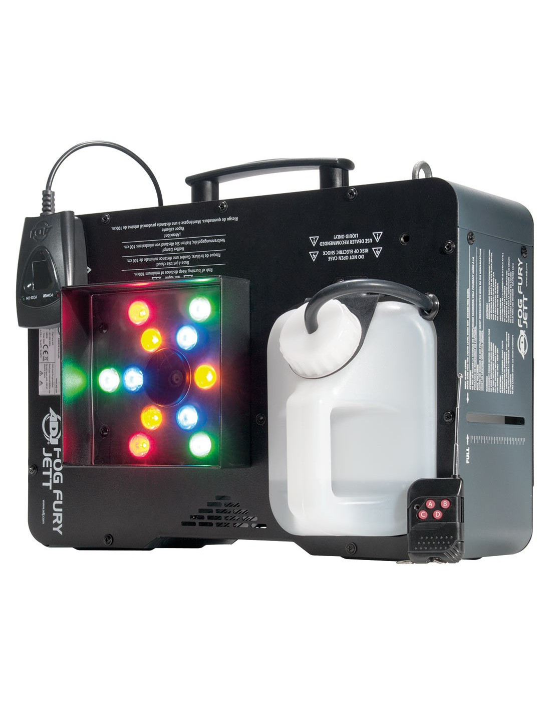 Le Fog Fury Jett d'ADJ est une machine à brouillard verticale à haute vitesse qui permet de rajouter des couleurs dans le brouillard grâce à ses 12 LEDs 3 Watt RGBA. Grâce aux nouvelles avancées dans la technologie de chauffage d'ADJ, le Fog Fury Jett produit un jet de brouillard sec uniforme jusqu'à 7 mètres (25 pieds) de haut dans l'air.