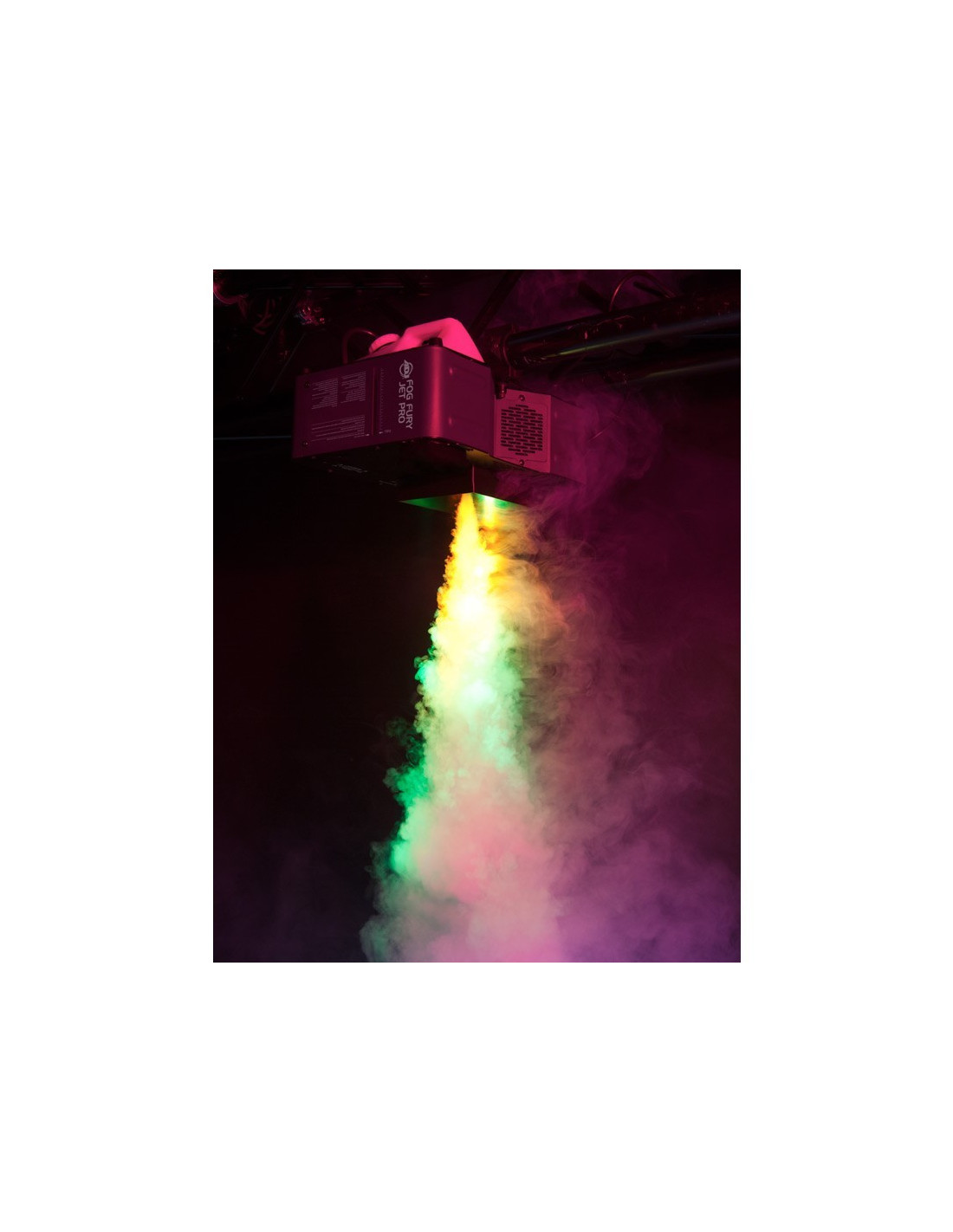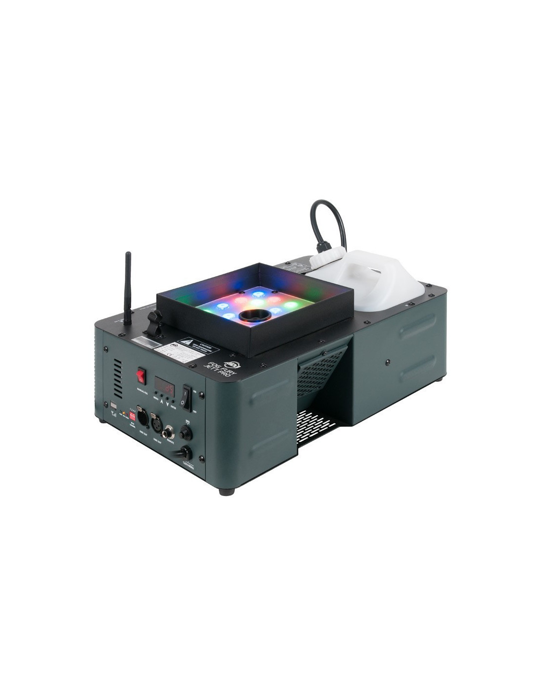 L'ADJ Fog Fury Jett Pro est une machine à jet vertical ou horizontal à grande vitesse qui mélange la couleur au brouillard à partir de 28 LEDs 3 watts (6 rouges, 7 verts, 6 bleus, 3 ambrés et 6 UV).