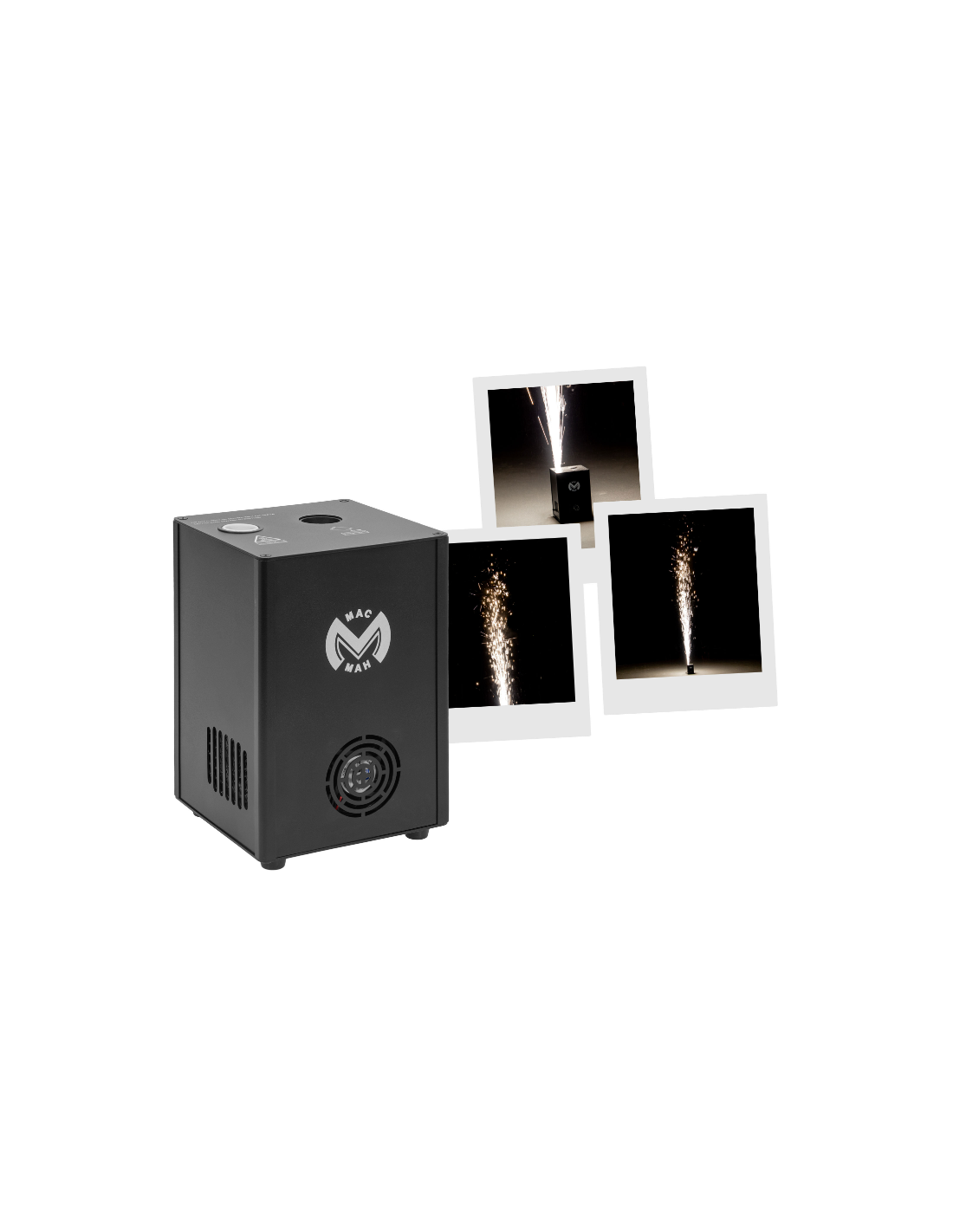 Machine à étincelles froides: hauteur de jet de 2 à 3 mètres, utilisation simple avec télécommande radio incluse.
