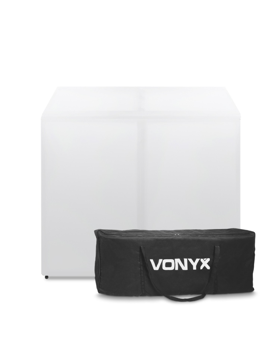 Stand régie DJ complet livré avec tissus lycra noir et blanc et sacoches de transport