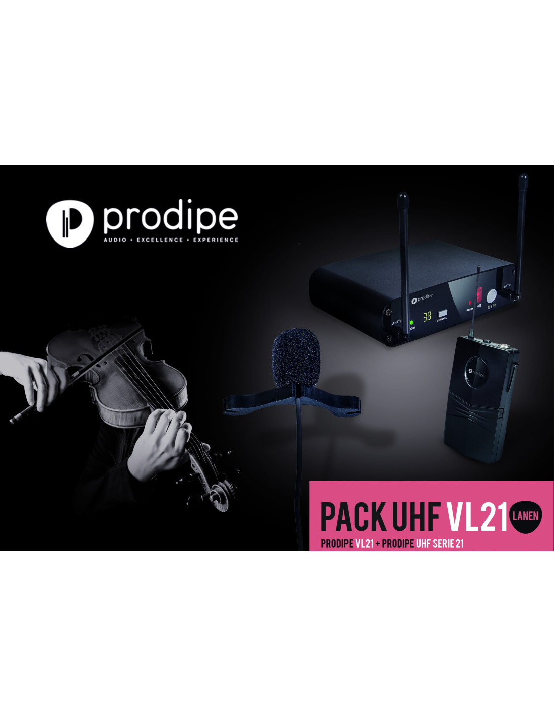 Ce pack comprend le Micro VL21 pour Violon et Alto, ainsi que le système PRODIPE UHF Série 21 Lanen.