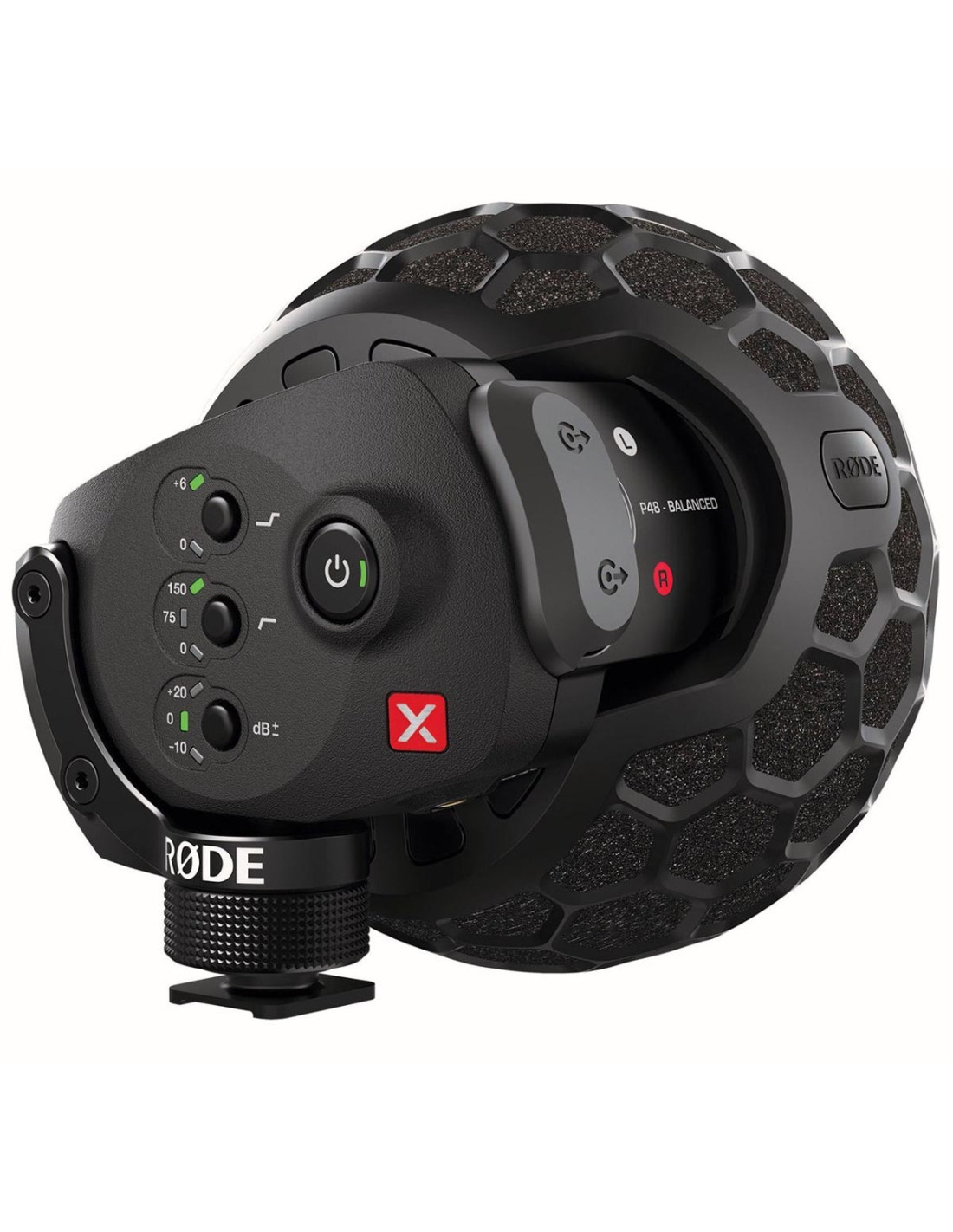 La face arrière du SVMX permet de régler le niveau d’entrée (–10dB ou +20dB), un filtre passe-haut (0/75/150Hz) et une accentuation innovante des hautes fréquences (+6dB @ XHz) pour accroître l’intelligibilité du dialogue. Ce microphone est le premier de la série VideoMic à proposer des sorties symétriques de qualité professionnelle sur le côté du corps pouvant remplacer le câble stéréo blindé (3,5mm). Une structure externe en dôme offre une protection physique aux capsules extrêmement sensibles tout en atténuant le bruit du vent comme le fameux Blimp de RØDE, couronné par un prix RedDot.