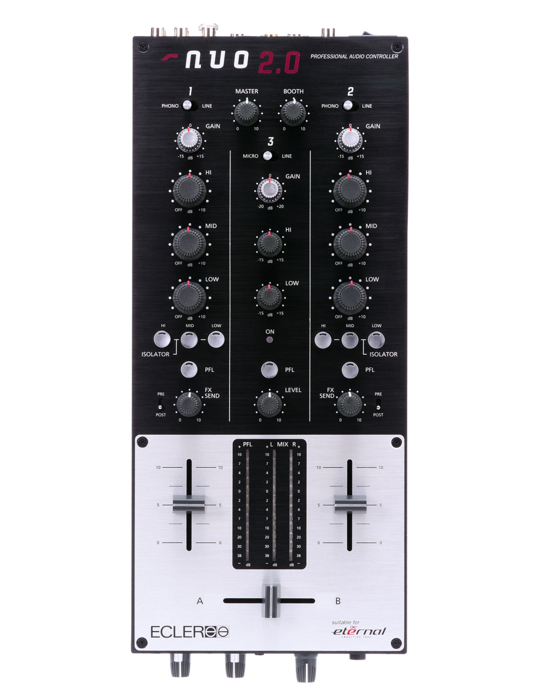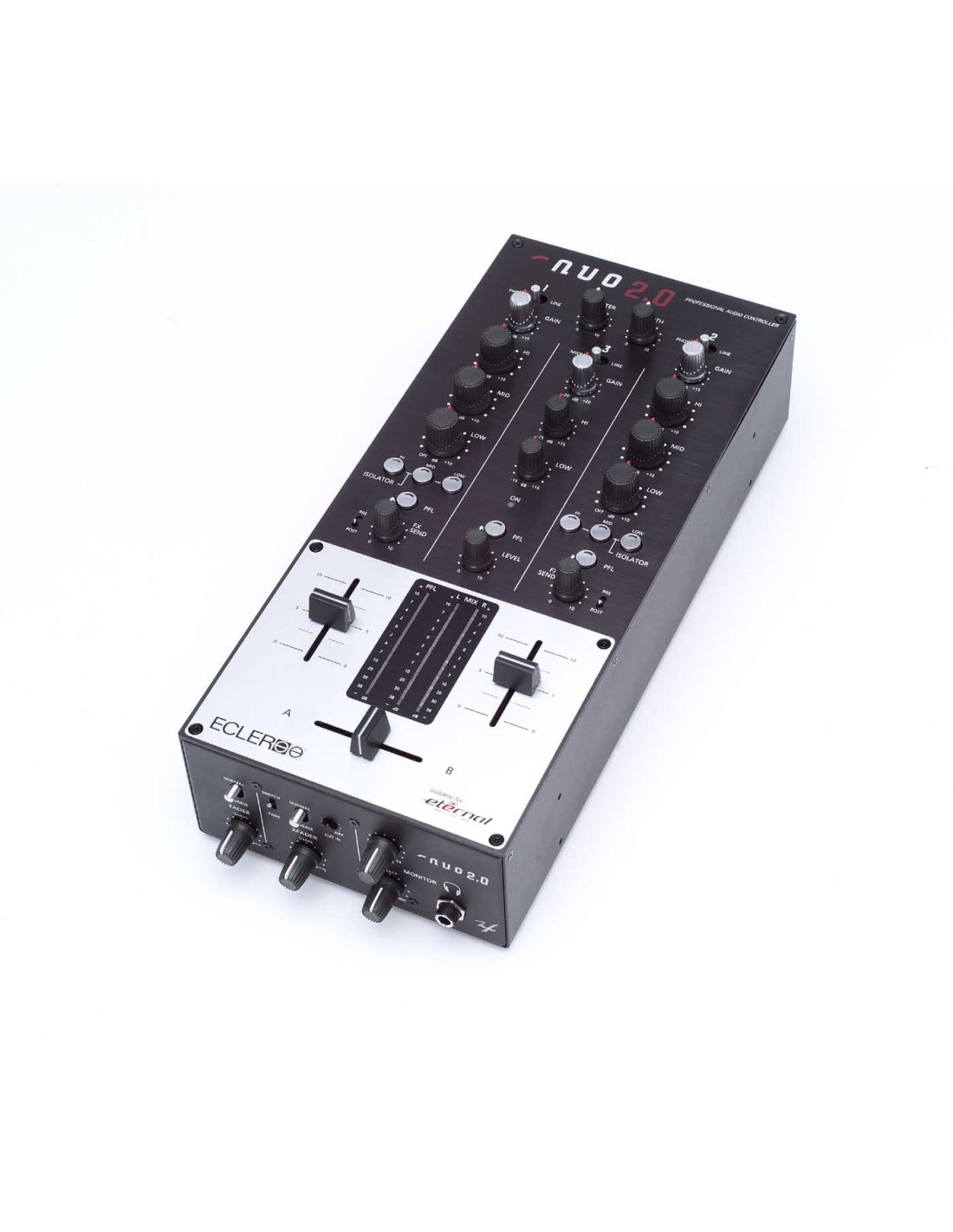 Que vous jouiez house, techno ou hip hop, que vous soyez doux ou un scratcheur agressif, la NUO 2.0 répondra à tous vos besoins grâce à ses équaliseurs à coupure totale très précis, ses départs d'effets par voie en pre ou post fader, ses réglages de courbes de faders et surtout la possibilité d'y mettre le très renommé crossfader magnétique ETERNAL.