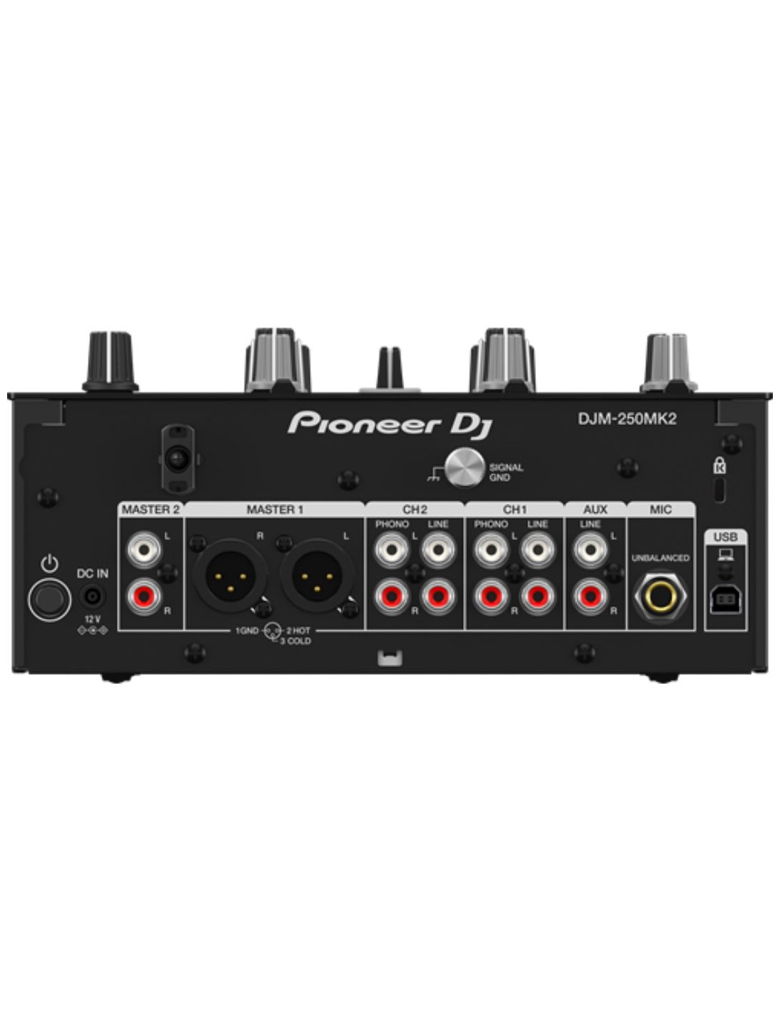 - Sorties : 1 MASTER (XLR) - 1 MASTER (RCA) - 2 HEADPHONE MONITOR (Jack 6,35 mm, mini-jack)