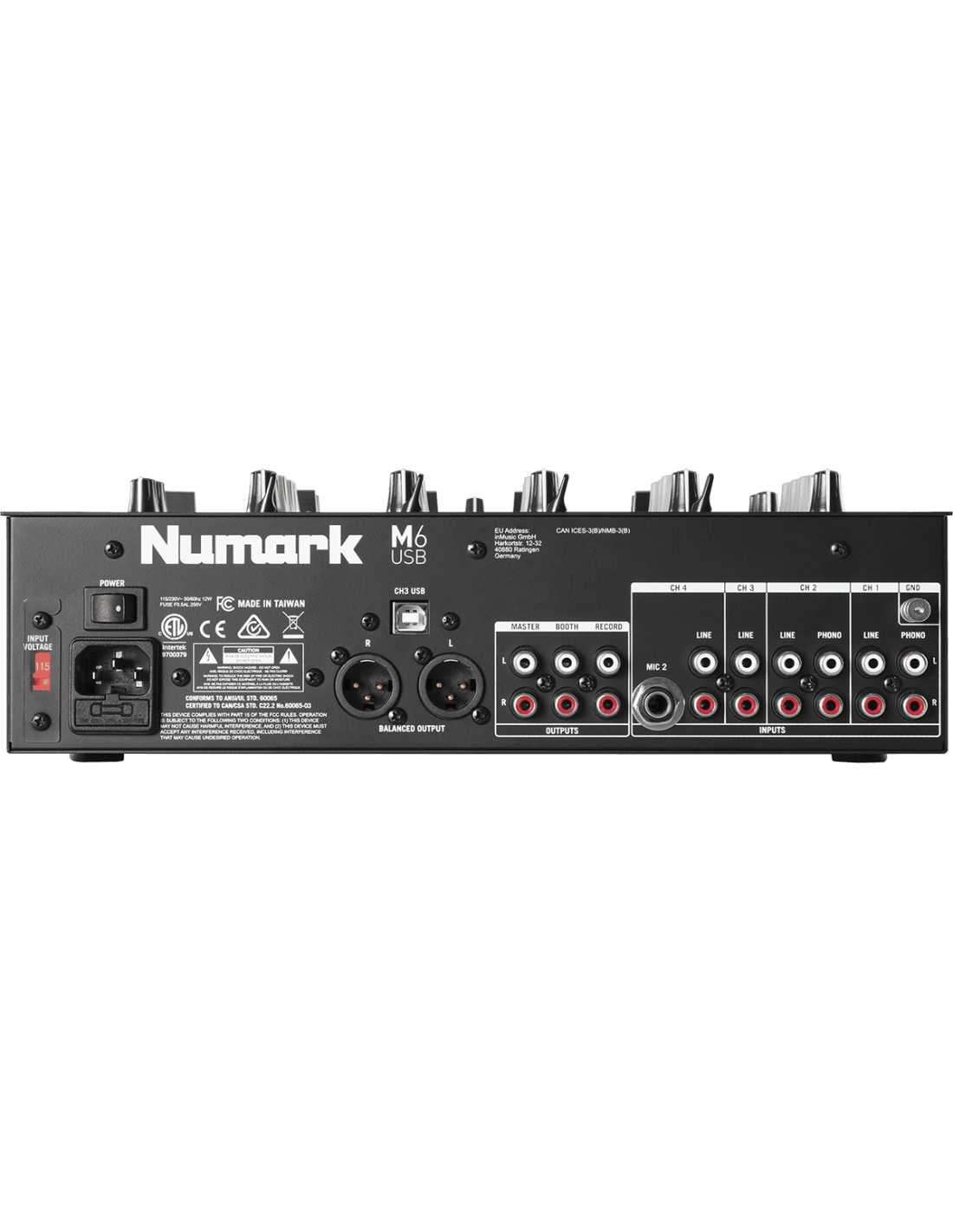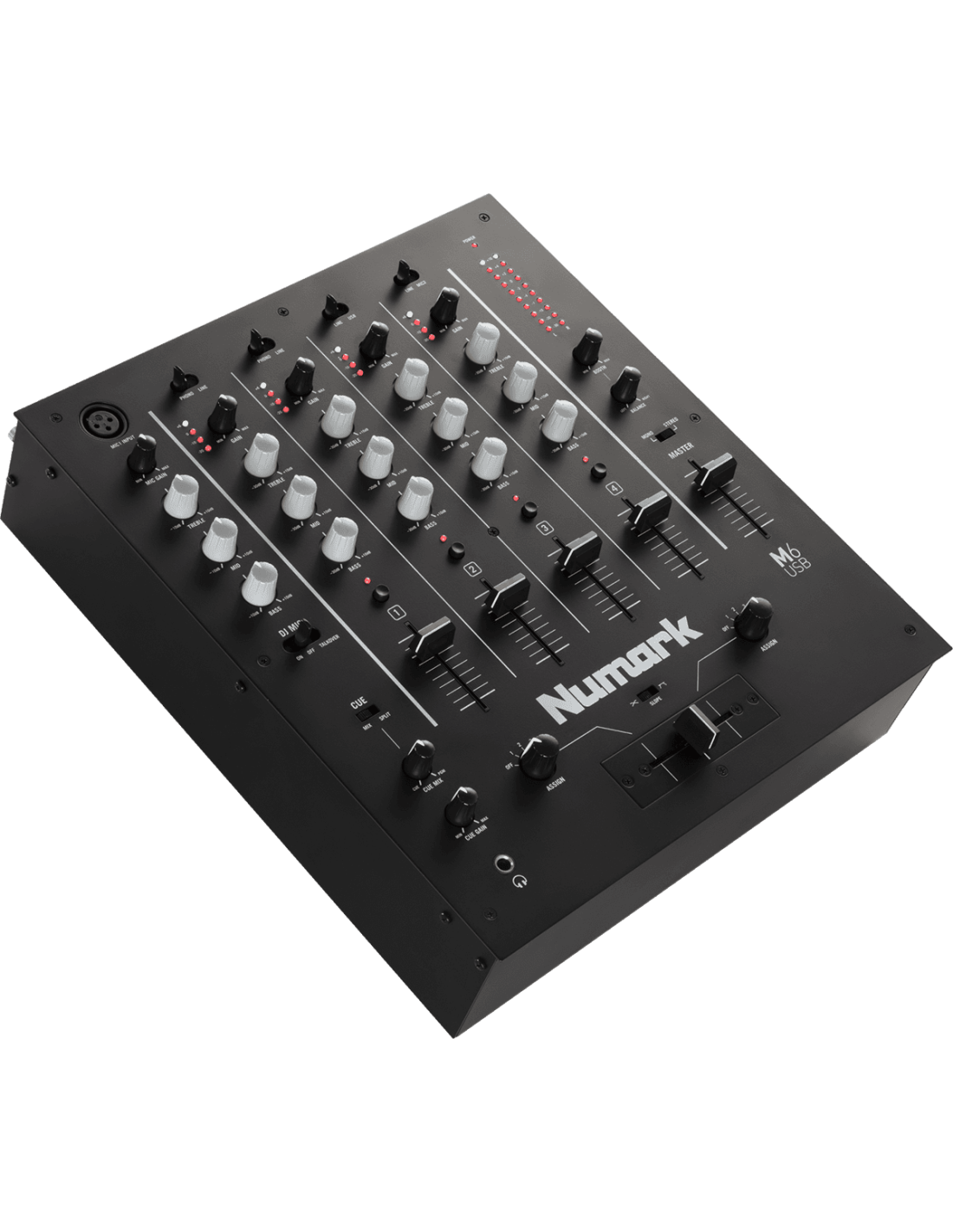 Mixer 4 voies, avec gain, égalisation 3 bandes et vu-mètre à leds- Connexion USB pour la lecture et l'enregistrement avec votre Mac ou PC.