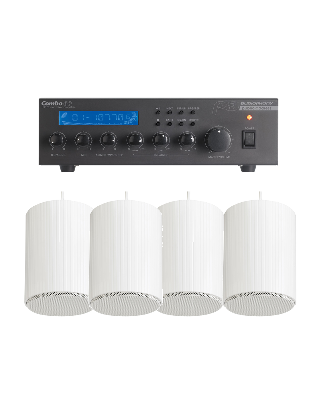 Pack de sonorisation pour une surface d'environ 100 M2. Comprenant un ampli COMBO 60 et 4 SHP510