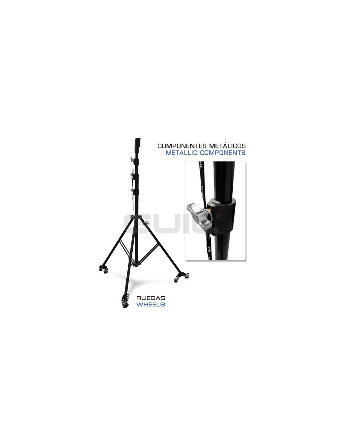 En Rupture de Stock Pieds sans Treuils ST240 Plugger PLUST240 129,00 € Support noir pour enceinte ou éclairage Plugger ST240, avec embase carrée en acier, tube 35 mm télescopique avec pas de vis M10 femelle. Hauteur ajustable de 150 à 240 cm, pour une charge maximale de 20 kg, livré avec housses de transport. Ajouter au panier