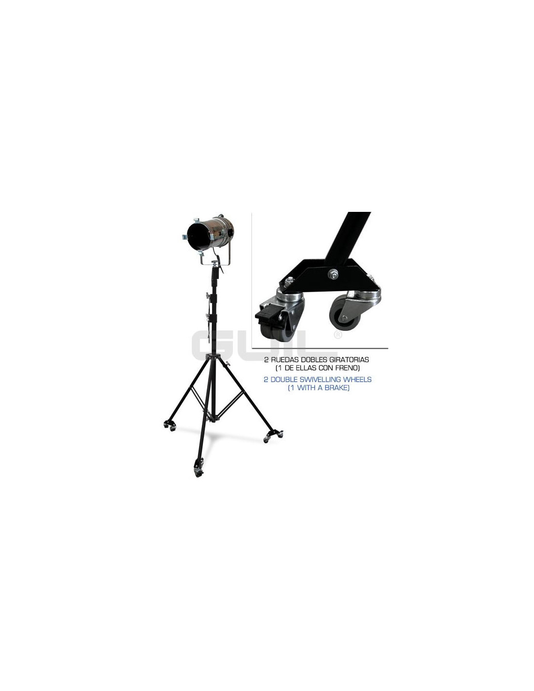 En Stock Pieds sans Treuils FC-03/R Guil FC-03/R 579,00 € 609,00 € Pied lumière télescopique avec adaptateur multi-têtes sur roulettes. Ajouter au panier