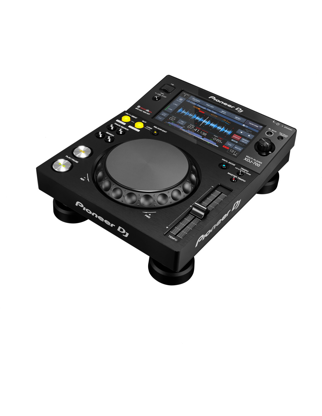 Le XDJ-700 présente un grand nombre de fonctionnalités issues du XDJ-1000, dont les Hot Cues, les Auto Loops, le Mode Slip et le Beat Sync. Le grand écran couleur LCD donne aux DJ un accès intuitif à toutes les fonctions du lecteur, et rend la navigation plus rapide grâce à son clavier QWERTY qui permet une recherche par mot clé.