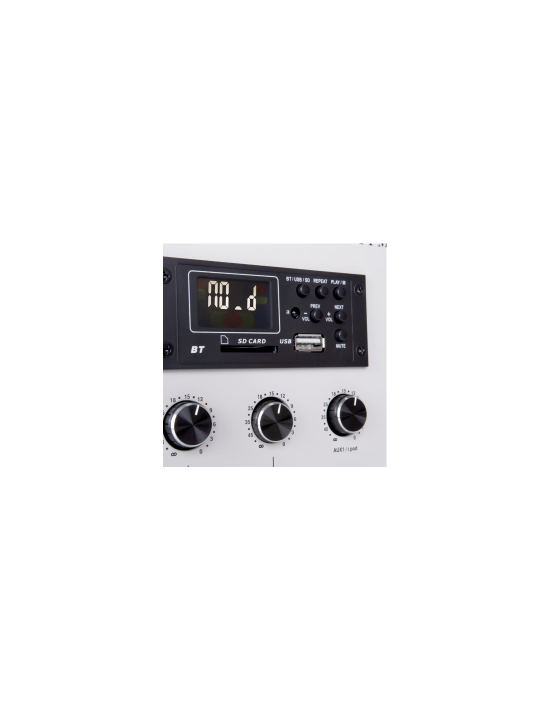 - Entrées/Sensibilité : MIC : - 50 dBu (2,45mV) 5KΩ symétrique // LINE : 0 dBu (775mV) 5KΩ symétrique // AUX I-pod : - 10 dBu (245mV) 15KΩ asymétrique