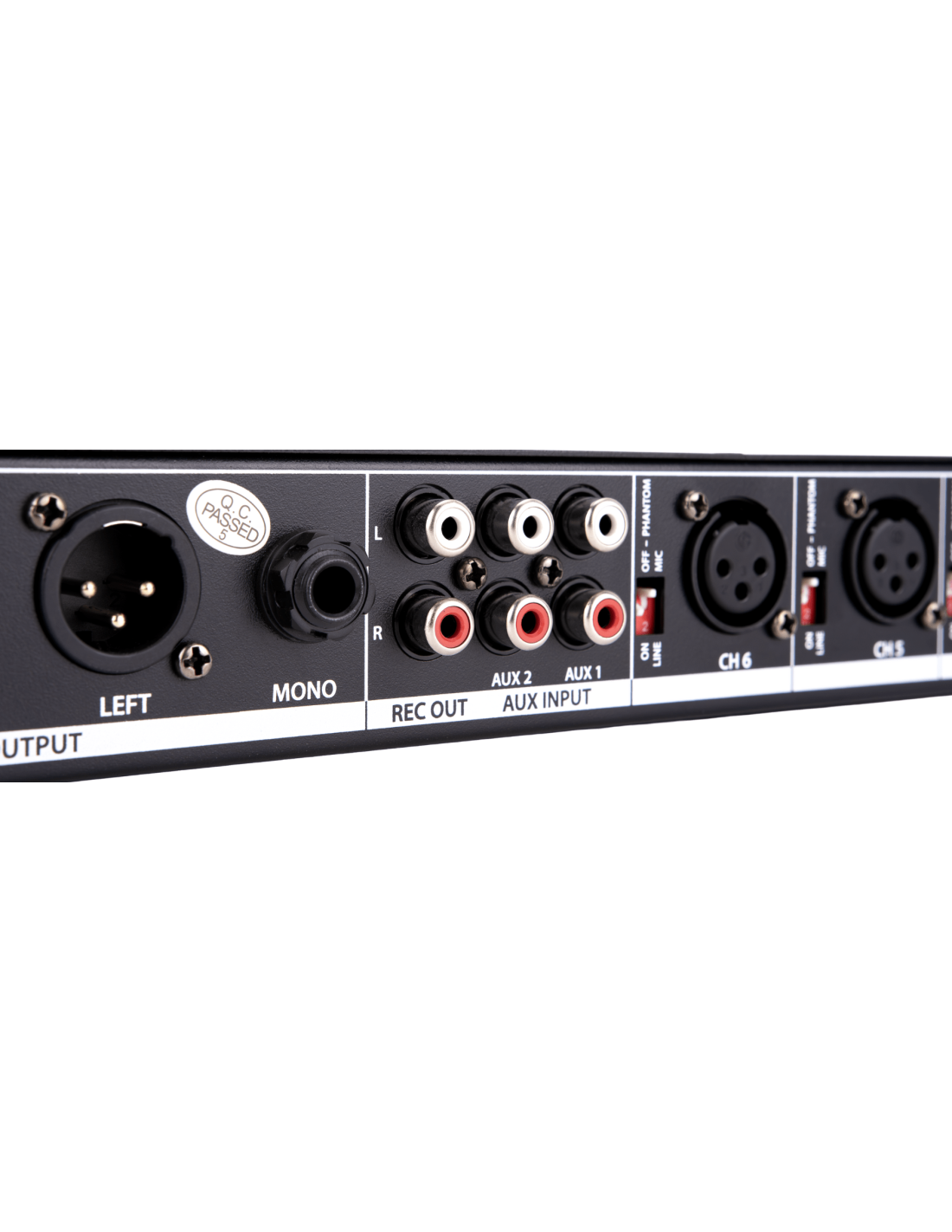 - Sorties : XLR stéréo (L+R) - Jack mono 6,3 mm non symétrique - RCA stéréo (L+R REC)