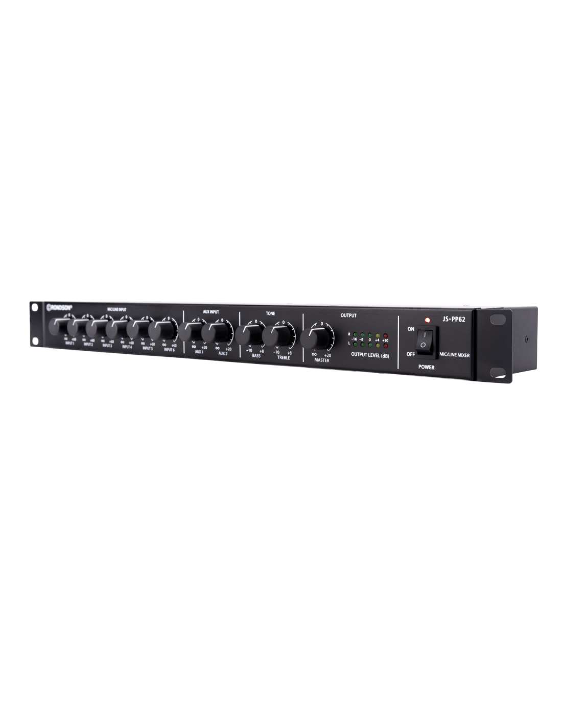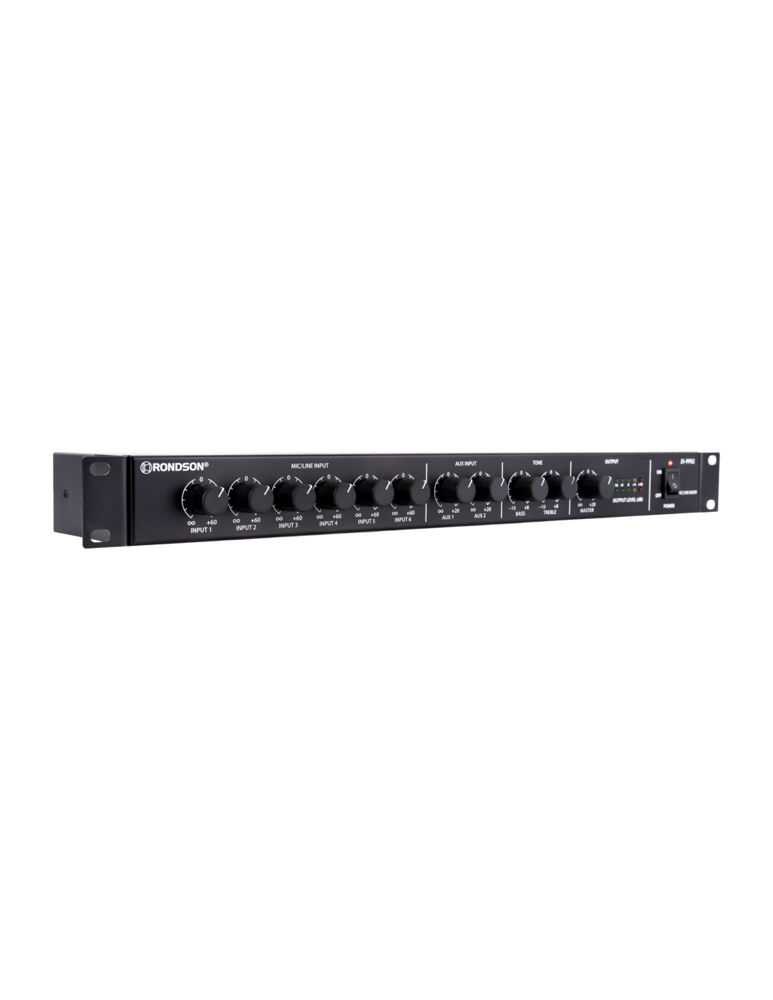 - Impédance d’entrée : 3,3 kΩ (mic/line), 10 kΩ (AUX)