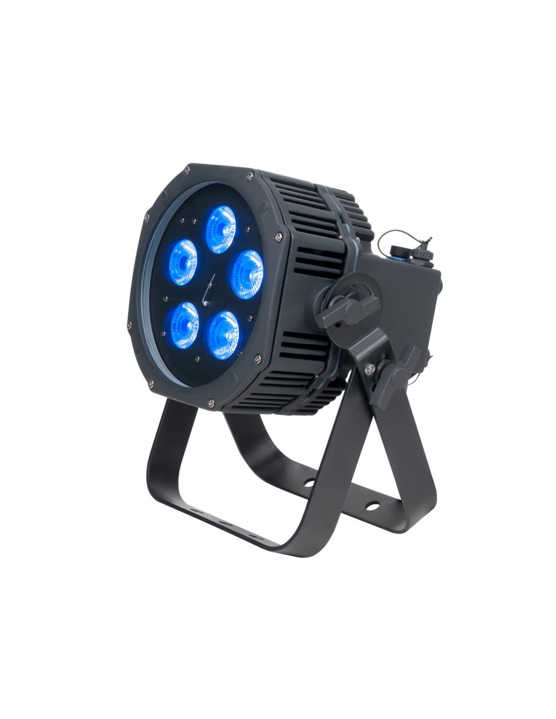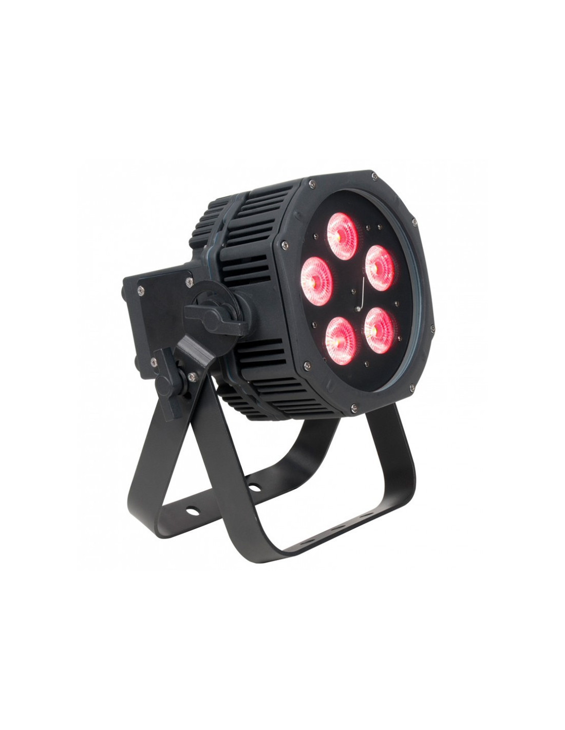 - Sources LED : 5 HEX LEDs de 10W (6-en-1 RGBWA+UV- Rouge, vert, bleu, ambre, blanc et UV, durée de vie estimée à 50.000 heures)