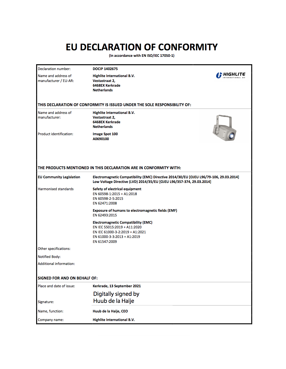 Le projecteur Image Spot 100 est équipé d’un zoom réglable 10° - 30° avec une fonction de mise au point du faisceau pour pouvoir configurer parfaitement la taille de la projection.