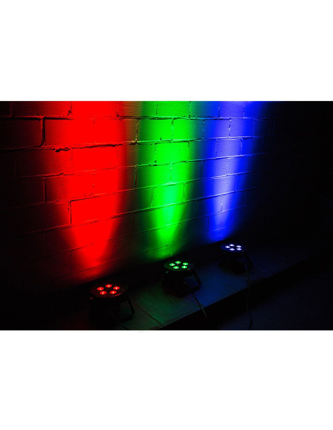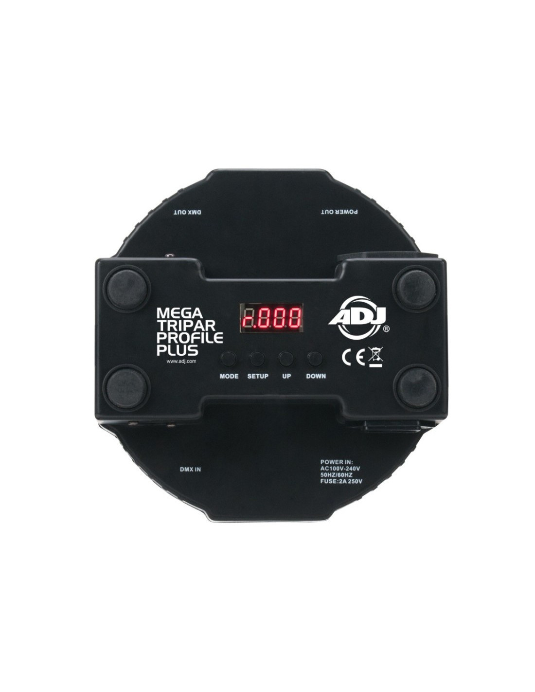Le Mega TriPar Profile Plus comprend 5 LEDS RGB+UV 4-en-1 de 4 W chacune à mélange de couleur fluide, un angle de faisceaux à 40°, 5 modes de fonctionnement (comprenant DMX, maître/esclave et musical) et 5 modes DMX pour une variété d’options de programmation. Les utilisateurs peuvent également utiliser la télécommande sans fil LED RC2 d’ADJ, vendue séparément, pour contrôler le Mega TriPar Profile Plus.