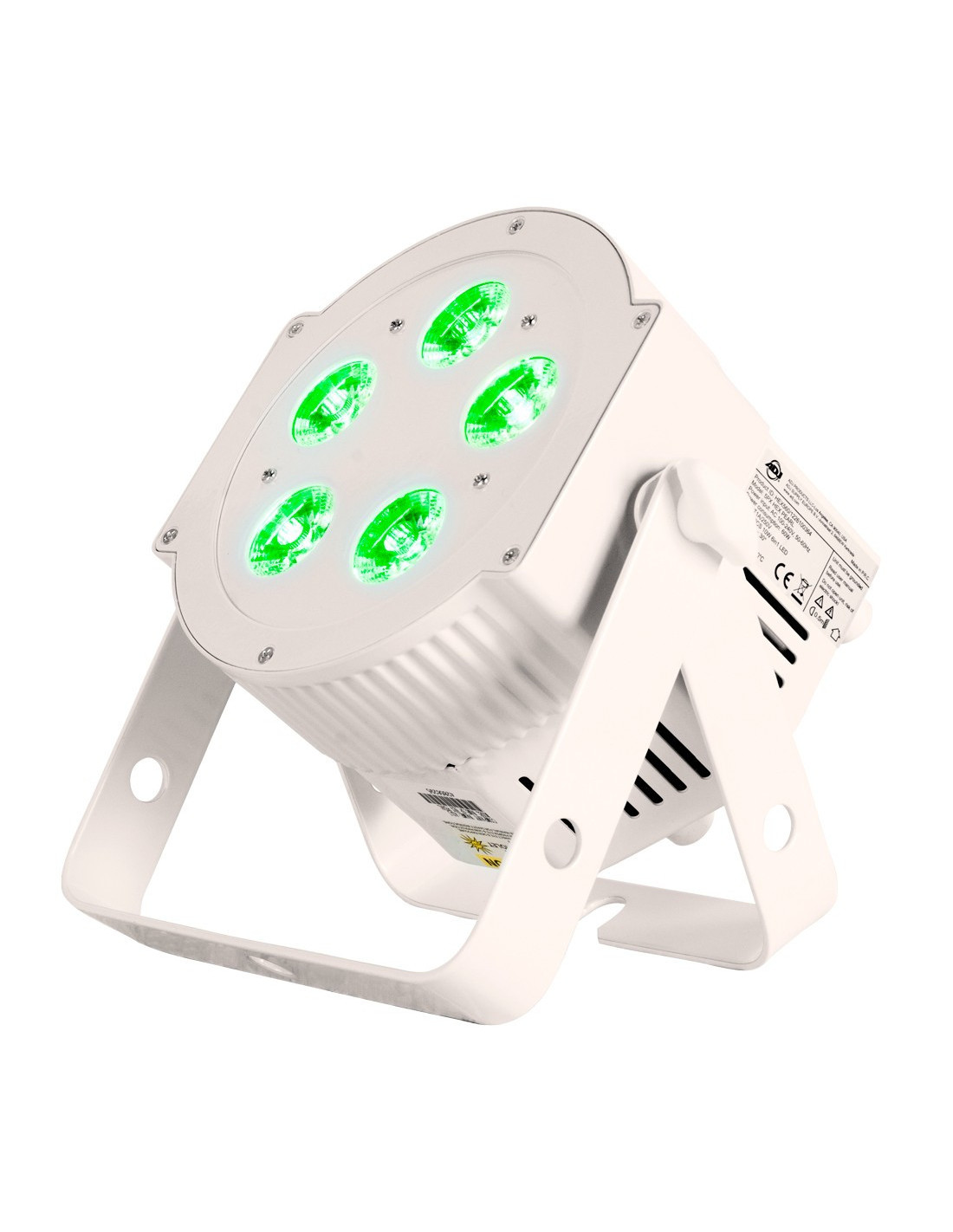 - Entrées/sorties CEI et DMX latérales permettent de poser le PAR directement au sol
