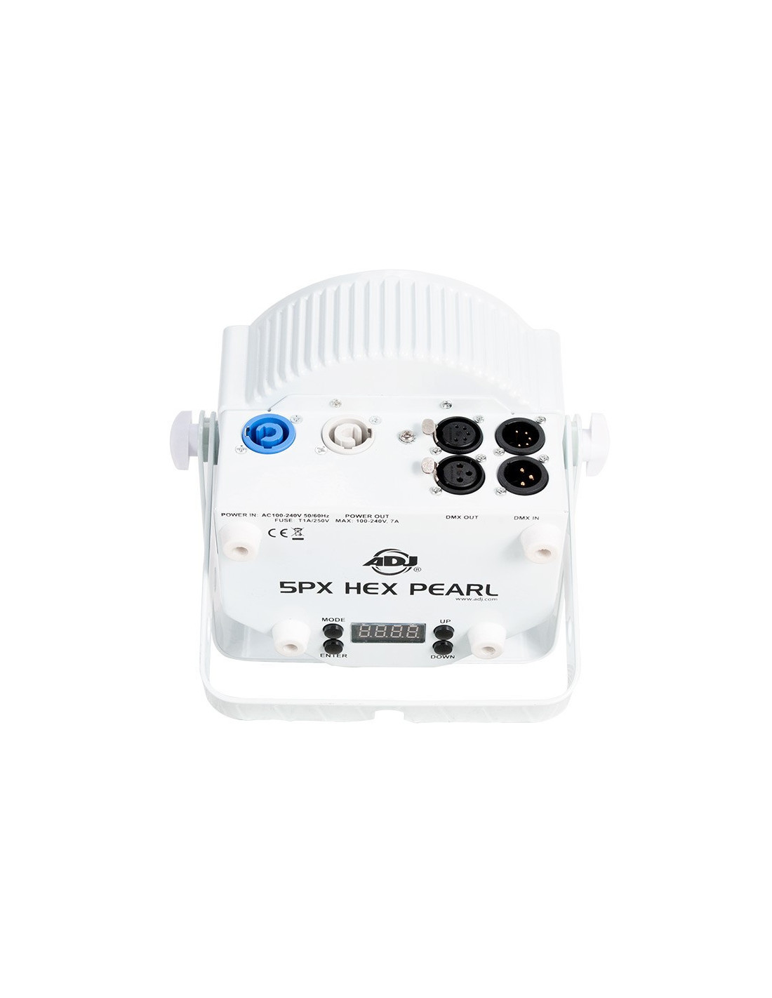 Le 5PX HEX comprend 4 modes DMX (6, 7, 8 et 12 canaux DMX), 5 modes opérationnels, 5 courbes de gradation, une opération sans scintillement pour l’utilisation dans les productions TV) et un affichage à 4 boutons de navigation pour faciliter la configuration. Vous pouvez chaîner jusqu’à 21 unités avec les connecteurs PowerCon In/Out latérales.