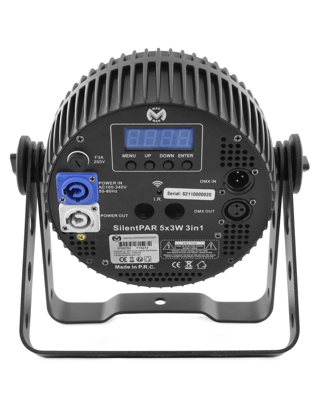 Le Mac Mah SilentPAR 5X3W 3IN1 est un PAR à LED 5x3W 3-en-1 (RGB), sans aucun bruit de ventilation.
