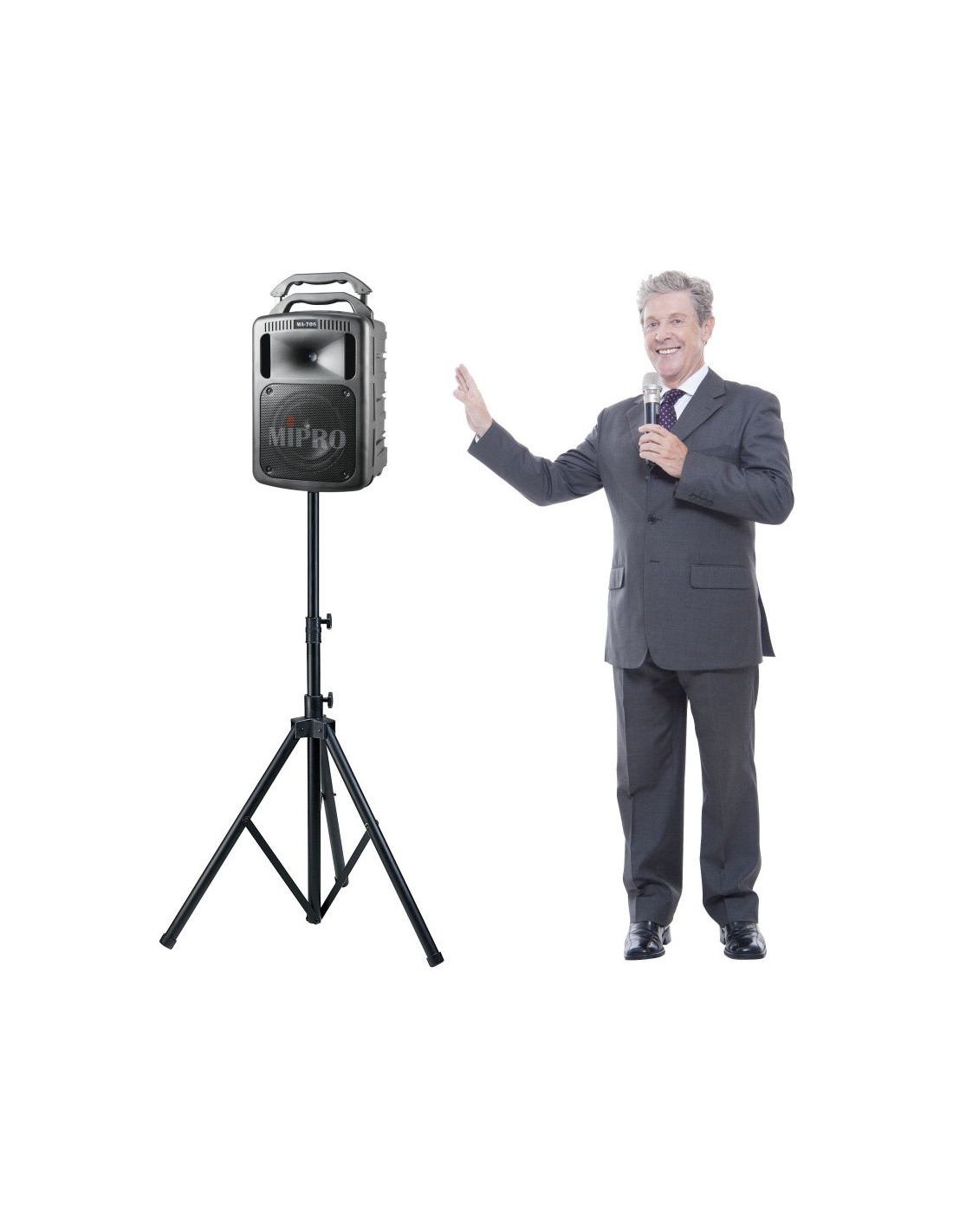 Sono portable 8" + Moteur 1.5" amplifiée 2 voies 190W sur batterie rechargeable + mixeur 3 entrées.