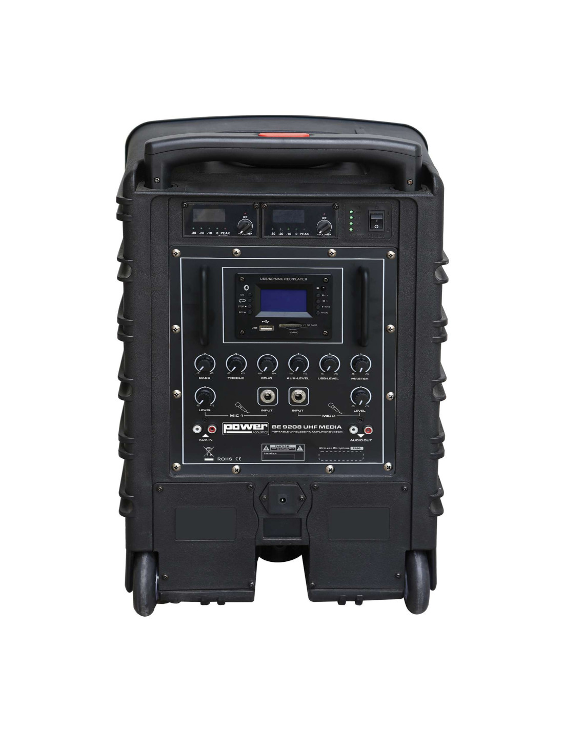 Évolution remarquable de la BE 9208, bien connue dans le domaine des systèmes portatifs avec batteries. La BE 9208 UHF MEDIA reprend toutes les qualités de son ainé, avec sa finition ABS et son design professionnel, mais ne possède pas de lecteur CD. Un lecteur multimédia ultra complet vous permettra de répondre à toutes les attentes actuelles. Compacte, puissante et légère, elle sera parfaite pour sonoriser tout type de conférences, discours ou présentations diverses.